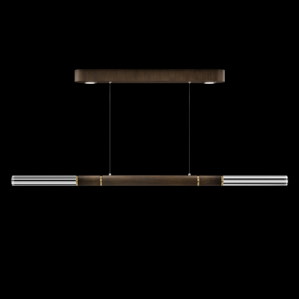 Suspended by adjustable cords, this LED fixture features straight tubular lines and the inclusion of metals carefully handcrafted to transition from parchment to magnificent glass, culminating in a stunning beam of light. Available in a wide range of exquisite finishes, including our five standard finishes and our newest Soft Ombre Bronze & Soft Ombre Silver, with choice parchment colors. Also available with no parchment. Upper & lower lights can be wired independently for single or dual light control.
