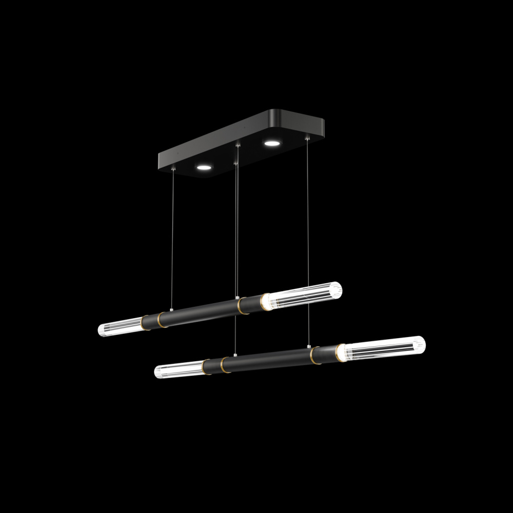 Suspended by adjustable cords, this LED fixture features straight tubular lines and the inclusion of metals carefully handcrafted to transition from parchment to magnificent glass, culminating in a stunning beam of light. Available in a wide range of exquisite finishes, including our five standard finishes and our newest Soft Ombre Bronze & Soft Ombre Silver, with choice parchment colors. Also available with no parchment. Upper & lower lights can be wired independently for single or dual light control.