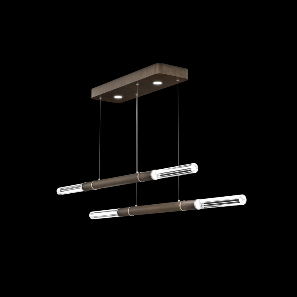 Suspended by adjustable cords, this LED fixture features straight tubular lines and the inclusion of metals carefully handcrafted to transition from parchment to magnificent glass, culminating in a stunning beam of light. Available in a wide range of exquisite finishes, including our five standard finishes and our newest Soft Ombre Bronze & Soft Ombre Silver, with choice parchment colors. Also available with no parchment. Upper & lower lights can be wired independently for single or dual light control.