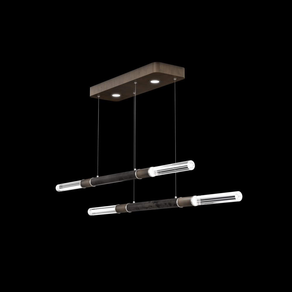 Suspended by adjustable cords, this LED fixture features straight tubular lines and the inclusion of metals carefully handcrafted to transition from parchment to magnificent glass, culminating in a stunning beam of light. Available in a wide range of exquisite finishes, including our five standard finishes and our newest Soft Ombre Bronze & Soft Ombre Silver, with choice parchment colors. Also available with no parchment. Upper & lower lights can be wired independently for single or dual light control.