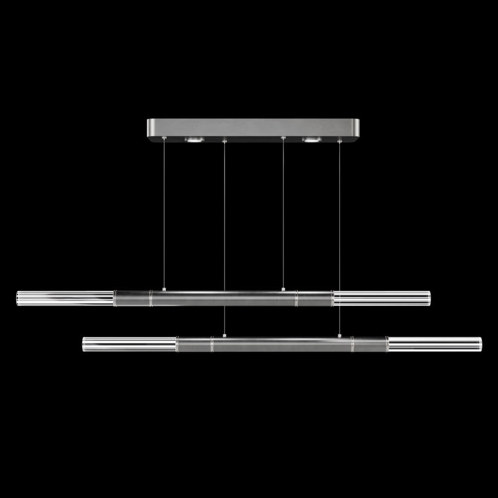 Suspended by adjustable cords, this LED fixture features straight tubular lines and the inclusion of metals carefully handcrafted to transition from parchment to magnificent glass, culminating in a stunning beam of light. Available in a wide range of exquisite finishes, including our five standard finishes and our newest Soft Ombre Bronze & Soft Ombre Silver, with choice parchment colors. Also available with no parchment. Upper & lower lights can be wired independently for single or dual light control.