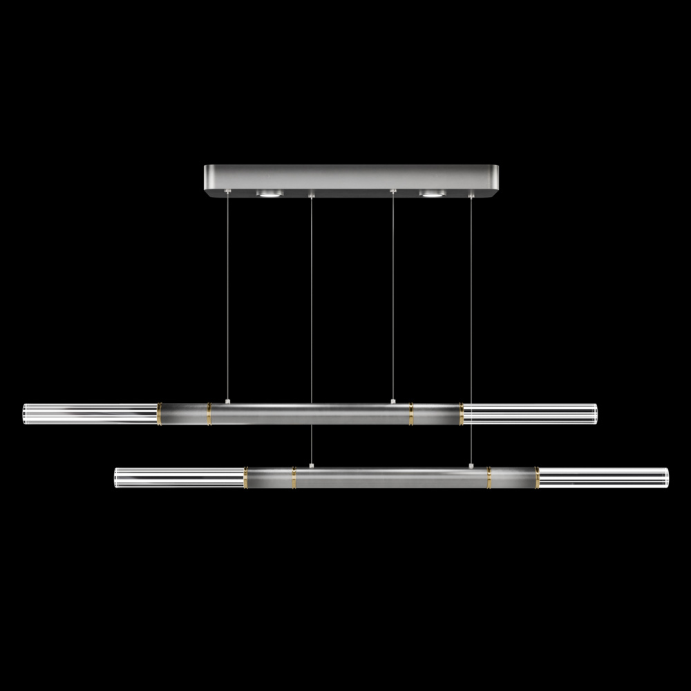 Suspended by adjustable cords, this LED fixture features straight tubular lines and the inclusion of metals carefully handcrafted to transition from parchment to magnificent glass, culminating in a stunning beam of light. Available in a wide range of exquisite finishes, including our five standard finishes and our newest Soft Ombre Bronze & Soft Ombre Silver, with choice parchment colors. Also available with no parchment. Upper & lower lights can be wired independently for single or dual light control.
