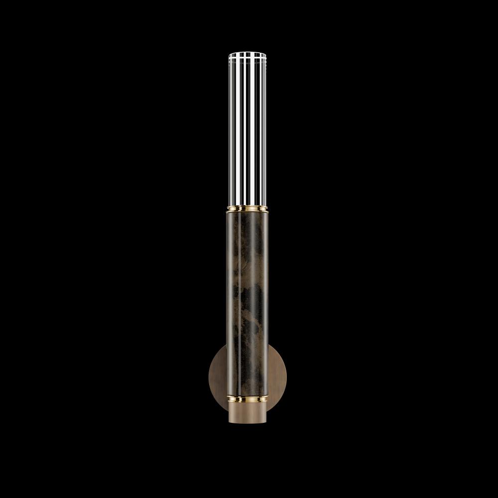 LED sconce features straight tubular lines and the inclusion of metals carefully handcrafted to transition from parchment to magnificent glass, culminating in a stunning beam of light. Available in a wide range of exquisite finishes, including our five standard finishes and our newest Soft Ombre Bronze & Soft Ombre Silver, with the choice of two inline parchment colors, Charcoal and Smoke, and three special order options: Mink, Burnt Orange & Navy/Gold. Also available with no parchment. Can be mounted facing up or down.