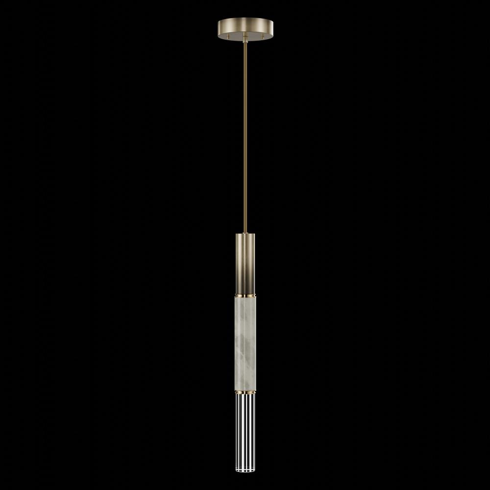 Suspended by an adjustable braided cord, this LED fixture features straight tubular lines and the inclusion of metals carefully handcrafted to transition from parchment to magnificent glass, culminating in a stunning beam of light. Available in a wide range of exquisite finishes, including our five standard finishes and our newest Soft Ombre Bronze & Soft Ombre Silver, with the choice of two inline parchment colors, Charcoal and Smoke, and three special order options: Mink, Burnt Orange & Navy/Gold. Also available with no parchment.