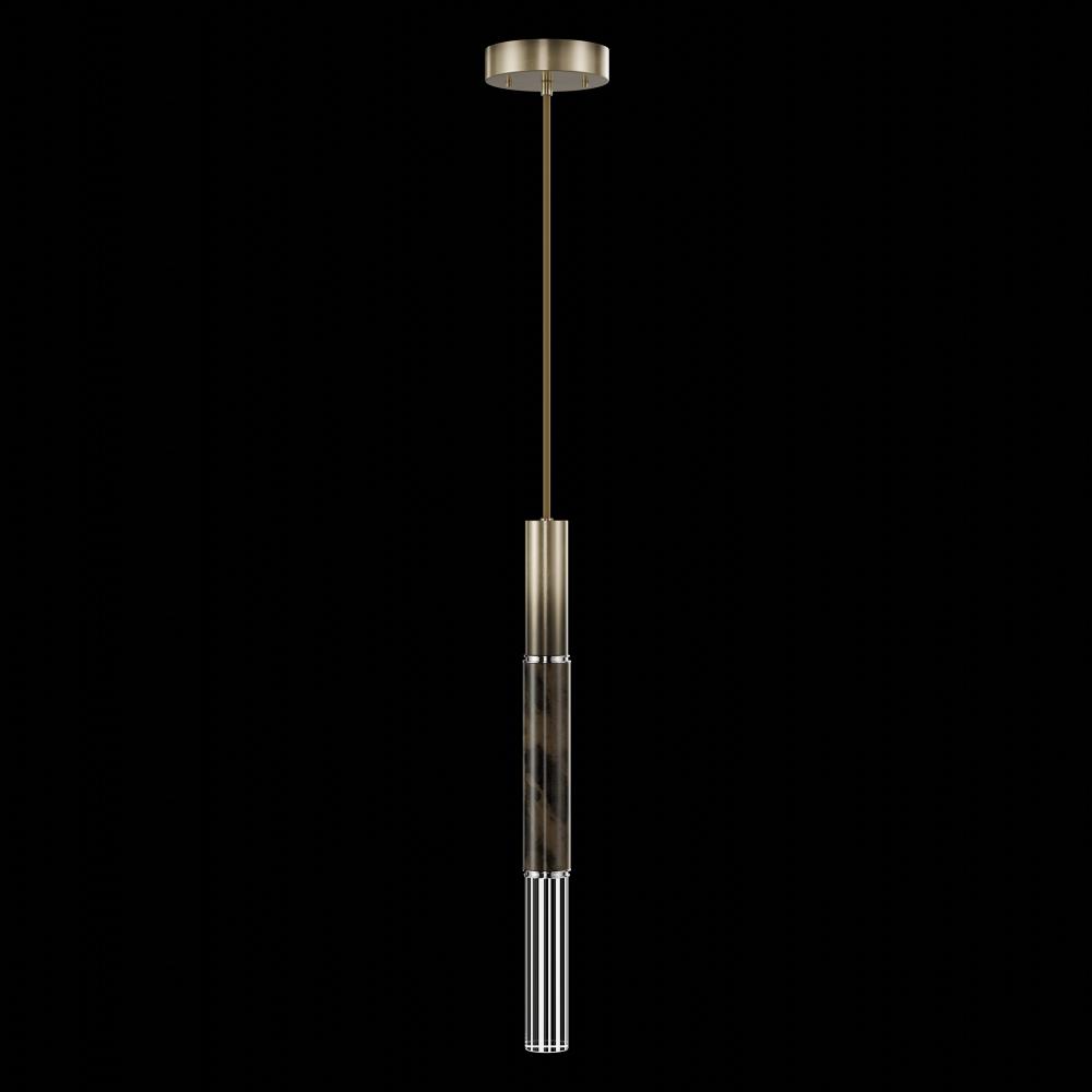 Suspended by an adjustable braided cord, this LED fixture features straight tubular lines and the inclusion of metals carefully handcrafted to transition from parchment to magnificent glass, culminating in a stunning beam of light. Available in a wide range of exquisite finishes, including our five standard finishes and our newest Soft Ombre Bronze & Soft Ombre Silver, with the choice of two inline parchment colors, Charcoal and Smoke, and three special order options: Mink, Burnt Orange & Navy/Gold. Also available with no parchment.