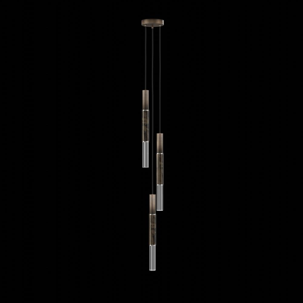 Suspended by adjustable braided cords, this LED fixture features straight tubular lines and the inclusion of metals carefully handcrafted to transition from parchment to magnificent glass, culminating in a stunning beam of light. Available in a wide range of exquisite finishes, including our five standard finishes and our newest Soft Ombre Bronze & Soft Ombre Silver, with the choice of two inline parchment colors, Charcoal and Smoke, and three special order options: Mink, Burnt Orange & Navy/Gold. Also available with no parchment.