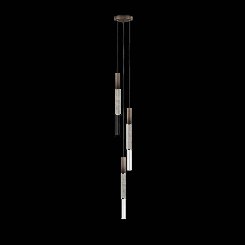 Suspended by adjustable braided cords, this LED fixture features straight tubular lines and the inclusion of metals carefully handcrafted to transition from parchment to magnificent glass, culminating in a stunning beam of light. Available in a wide range of exquisite finishes, including our five standard finishes and our newest Soft Ombre Bronze & Soft Ombre Silver, with the choice of two inline parchment colors, Charcoal and Smoke, and three special order options: Mink, Burnt Orange & Navy/Gold. Also available with no parchment.