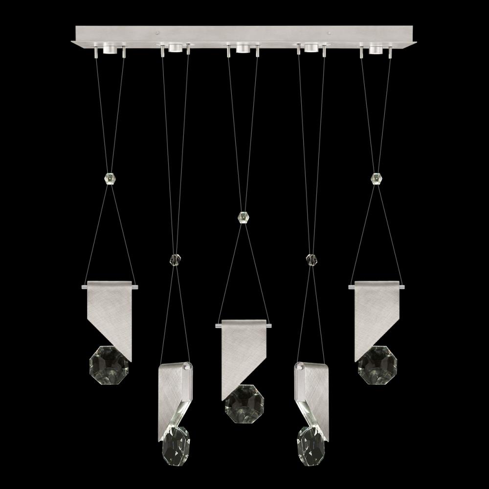 Five-drop linear pendant inspired by the sophistication and versatility of necklace charms. This collection empowers you to curate your unique piece with its five exquisite finishes and four distinct charm designs meticulously crafted using opulent faceted optic crystal. Each charm shines like a gem, captivating attention. Whether you desire the delicate dance of light reflecting off the crystal or the functional illumination from above, Aria's integrated LED lights bring your vision to life.