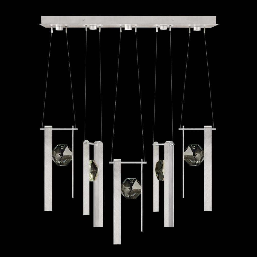 Five-drop linear pendant inspired by the sophistication and versatility of necklace charms. This collection empowers you to curate your unique piece with its five exquisite finishes and four distinct charm designs meticulously crafted using opulent faceted optic crystal. Each charm shines like a gem, captivating attention. Whether you desire the delicate dance of light reflecting off the crystal or the functional illumination from above, Aria's integrated LED lights bring your vision to life.