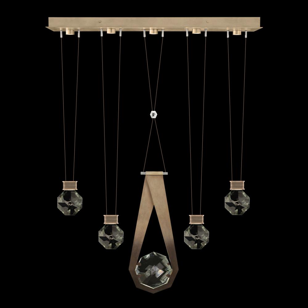 Five-drop linear pendant inspired by the sophistication and versatility of necklace charms. This collection empowers you to curate your unique piece with its five exquisite finishes and four distinct charm designs meticulously crafted using opulent faceted optic crystal. Each charm shines like a gem, captivating attention. Whether you desire the delicate dance of light reflecting off the crystal or the functional illumination from above, Aria's integrated LED lights bring your vision to life.