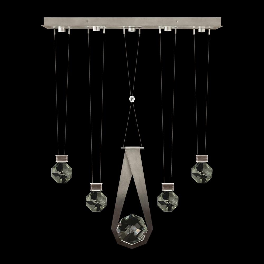 Five-drop linear pendant inspired by the sophistication and versatility of necklace charms. This collection empowers you to curate your unique piece with its five exquisite finishes and four distinct charm designs meticulously crafted using opulent faceted optic crystal. Each charm shines like a gem, captivating attention. Whether you desire the delicate dance of light reflecting off the crystal or the functional illumination from above, Aria's integrated LED lights bring your vision to life.