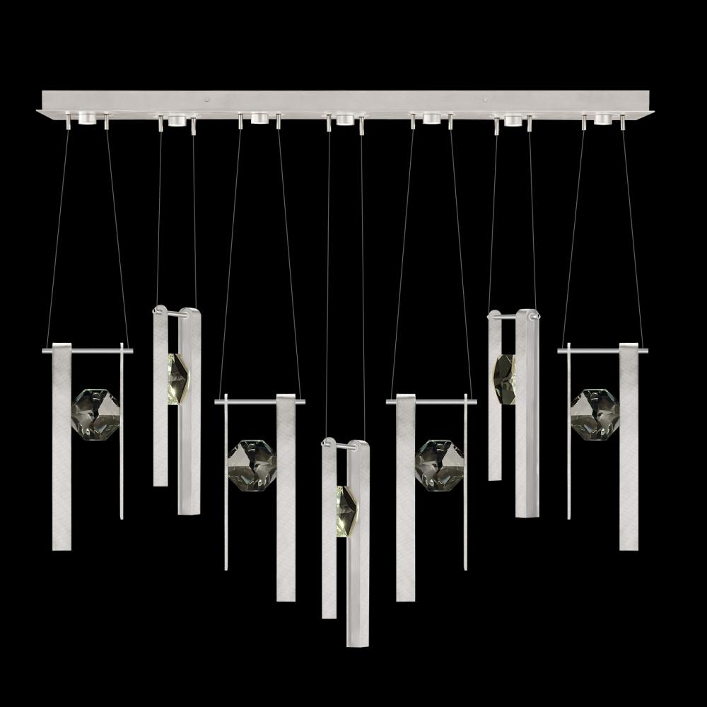 Seven-drop linear pendant inspired by the sophistication and versatility of necklace charms. This collection empowers you to curate your unique piece with its five exquisite finishes and four distinct charm designs meticulously crafted using opulent faceted optic crystal. Each charm shines like a gem, captivating attention. Whether you desire the delicate dance of light reflecting off the crystal or the functional illumination from above, Aria's integrated LED lights bring your vision to life.