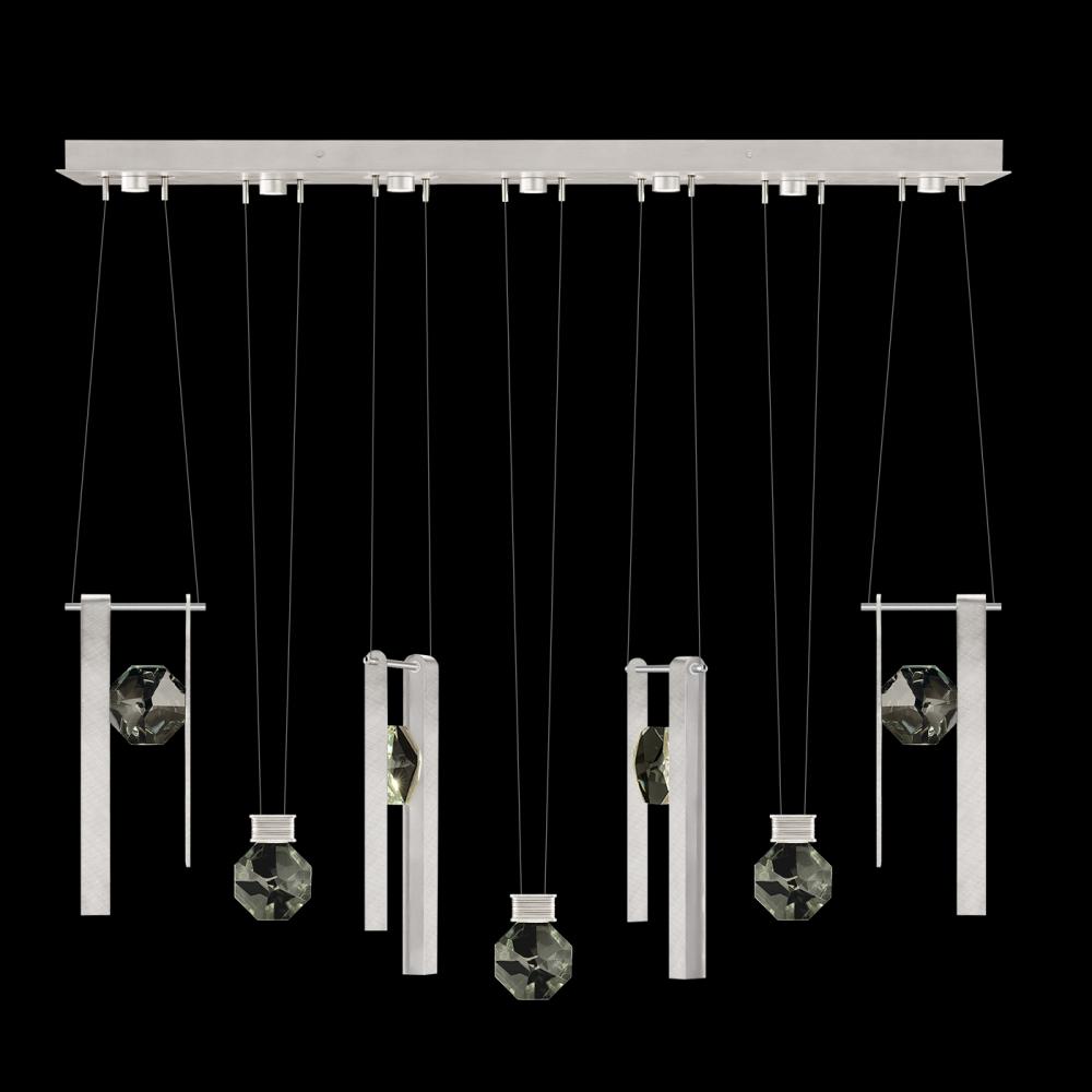 Seven-drop linear pendant inspired by the sophistication and versatility of necklace charms. This collection empowers you to curate your unique piece with its five exquisite finishes and four distinct charm designs meticulously crafted using opulent faceted optic crystal. Each charm shines like a gem, captivating attention. Whether you desire the delicate dance of light reflecting off the crystal or the functional illumination from above, Aria's integrated LED lights bring your vision to life.