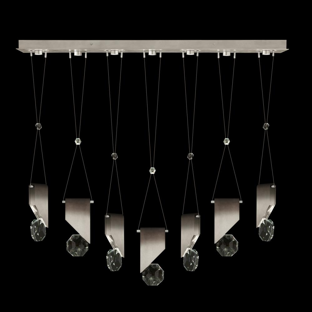 Seven-drop linear pendant inspired by the sophistication and versatility of necklace charms. This collection empowers you to curate your unique piece with its five exquisite finishes and four distinct charm designs meticulously crafted using opulent faceted optic crystal. Each charm shines like a gem, captivating attention. Whether you desire the delicate dance of light reflecting off the crystal or the functional illumination from above, Aria's integrated LED lights bring your vision to life.