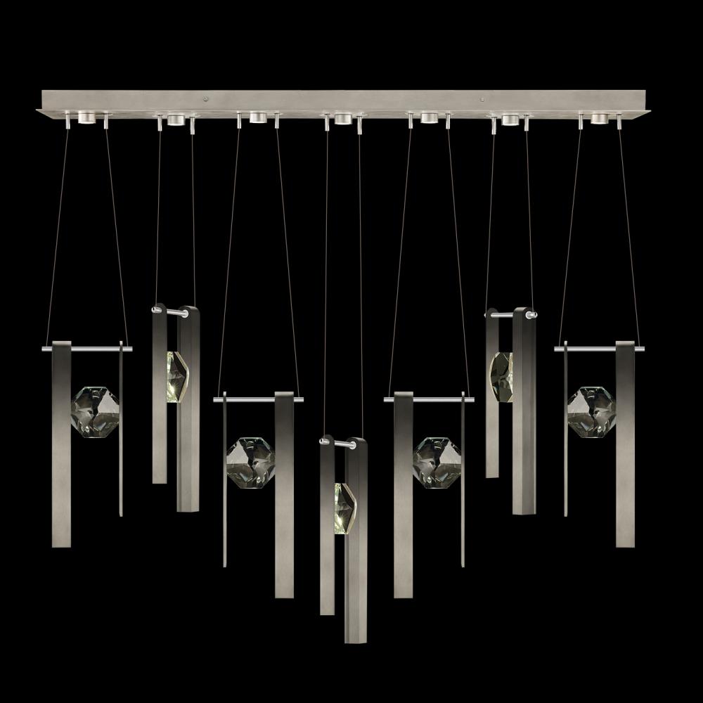 Seven-drop linear pendant inspired by the sophistication and versatility of necklace charms. This collection empowers you to curate your unique piece with its five exquisite finishes and four distinct charm designs meticulously crafted using opulent faceted optic crystal. Each charm shines like a gem, captivating attention. Whether you desire the delicate dance of light reflecting off the crystal or the functional illumination from above, Aria's integrated LED lights bring your vision to life.