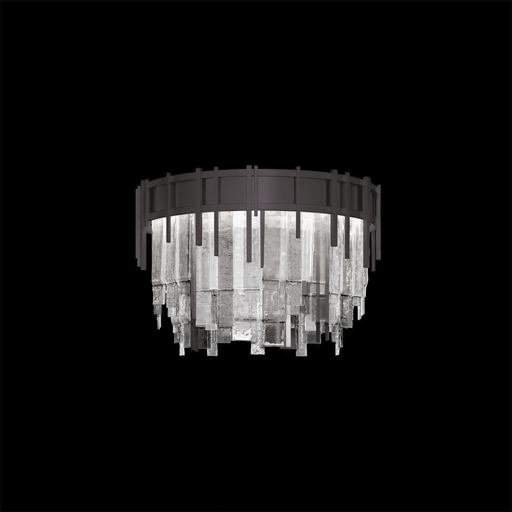 Inspired by the love of Jazz and the harmonious arrangement of musical notes, this Arpeggio flush mount features panels of cascading glass fused together to create a chorus of visual delight.The collection emulates melody and movement, characterized by its multi-layered design of fused-glass panels, combining clear and colored glass to create a captivating, textured look.Color glass options feature textured glass panels masterfully layered and fused together in clear, or multi-tonal mix of clear, smoke, and bronze, with Midnight Steel or Soft Gold Leaf finish options.