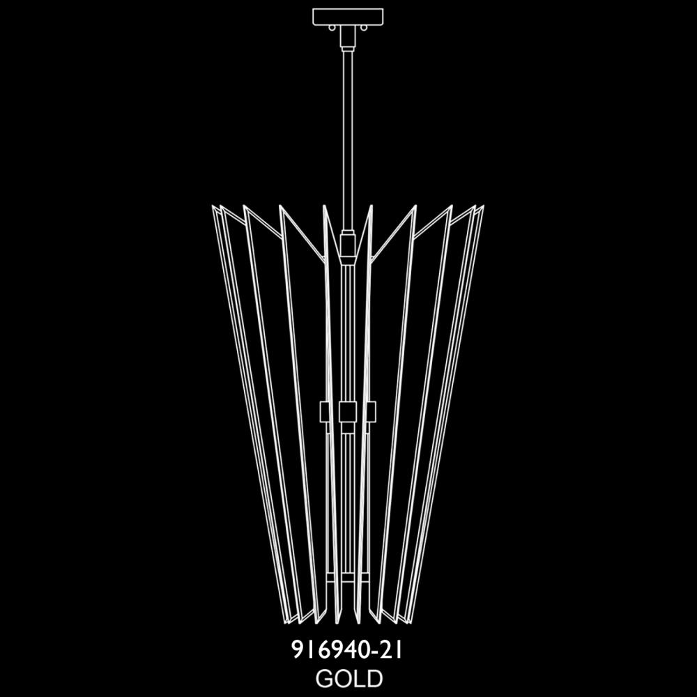 Gold leaf “up” LED pendant featuring strikingly carved and arrayed crystal planes. Contemporary in form and silhouette, these sculptures of metal and light offer an ordered sense of complexity as they introduce crisp illumination, sparkle at every angle, and the color-infused prismatic brilliance of multi-faceted glass works. Features downlight on all configurations. Suitable for vaulted ceiling with adapter, sold separately.