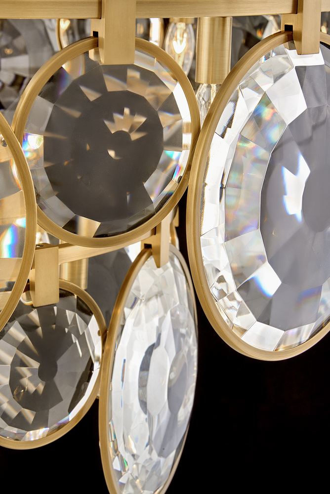 Nala is striking from any angle with a traditional silhouette and elegant eye-catching details. Multi-faceted, optic-crystal lenses surround the circular frame and attach with cast clips in Heritage Brass and Black finishes.