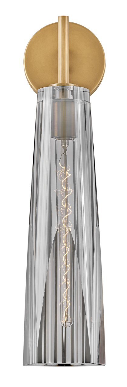 With a dramatic but sleek silhouette and elongated crystal-cut sconce shades, Cosette exudes opulent charm. With two luxurious heavy-cut crystal shade options, smokey gray or clear, both beautifully cast a rich, multi-faceted light pattern. Cosette's sconce includes an elegantly concealed on/off switch, making it perfect for bedsides and intimate spaces pattern.
