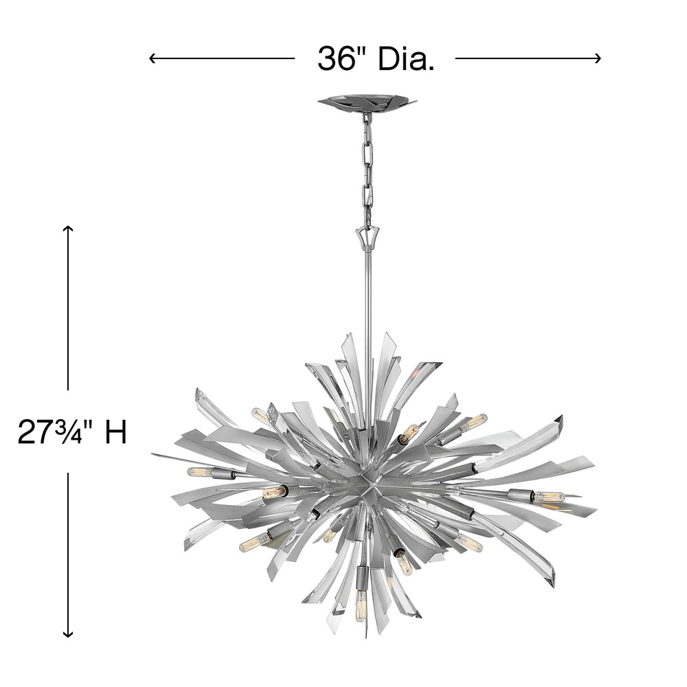 Vida's modern design bursts with a flourishing style that is both highly dramatic and finely sculpted. A statement piece with crystal accents and unique canopy detailing, Vida injects a thrilling dash of contemporary inspiration to its surroundings in a Burnished Gold or Glacial finish.