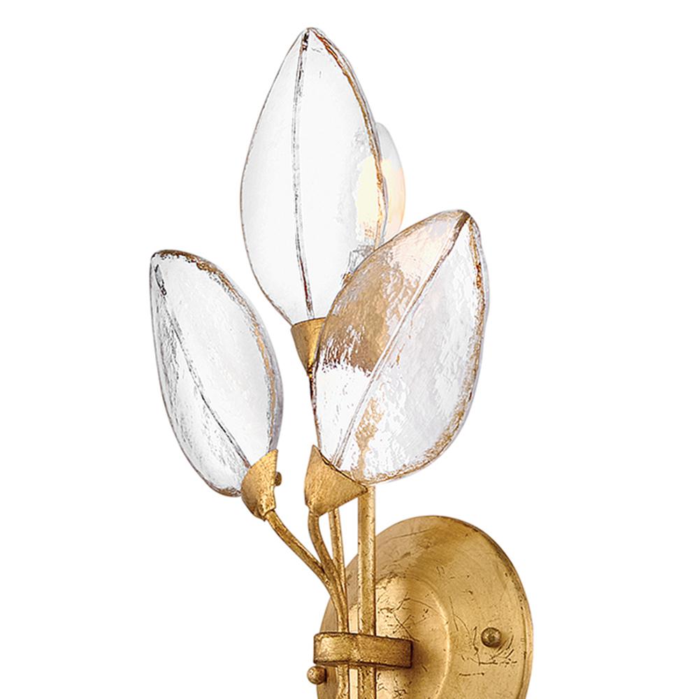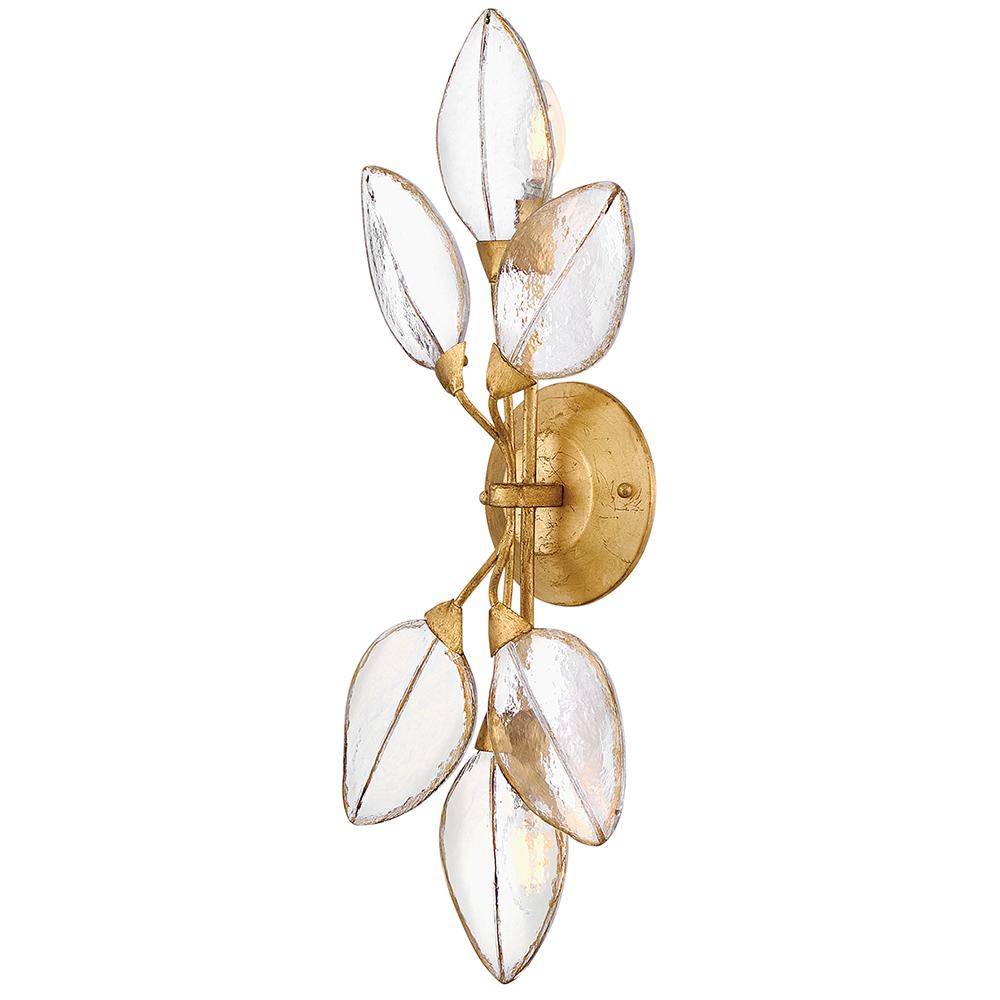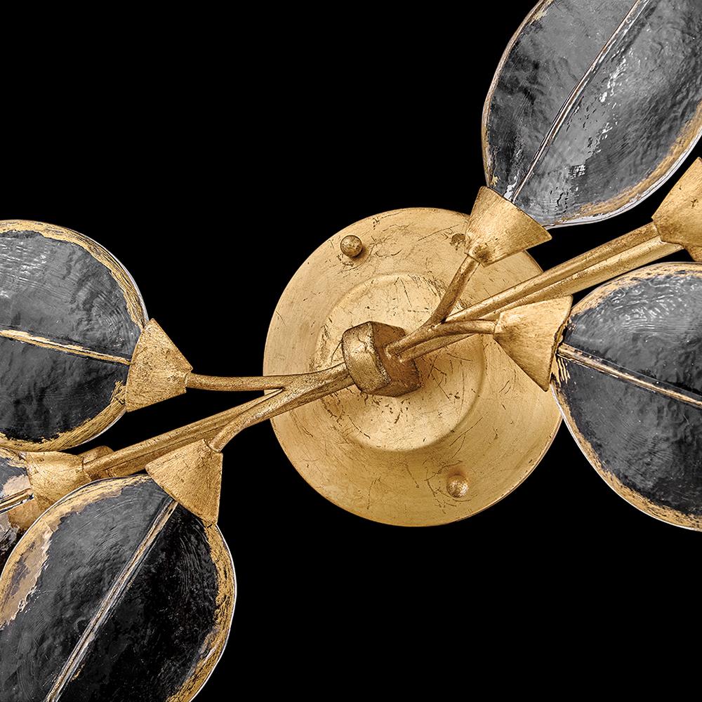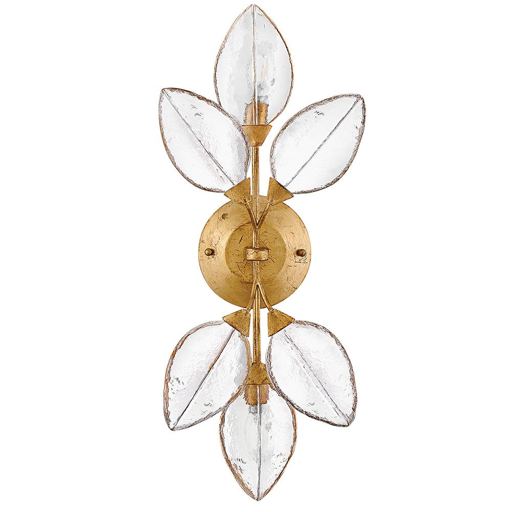 Romantic and elegant, Amira’s floral and vine-inspired design features clear pressed glass leaves hand-painted with delicate gold detailing. A refined Distressed Brass frame evokes a timeless charm.