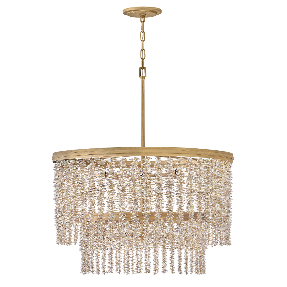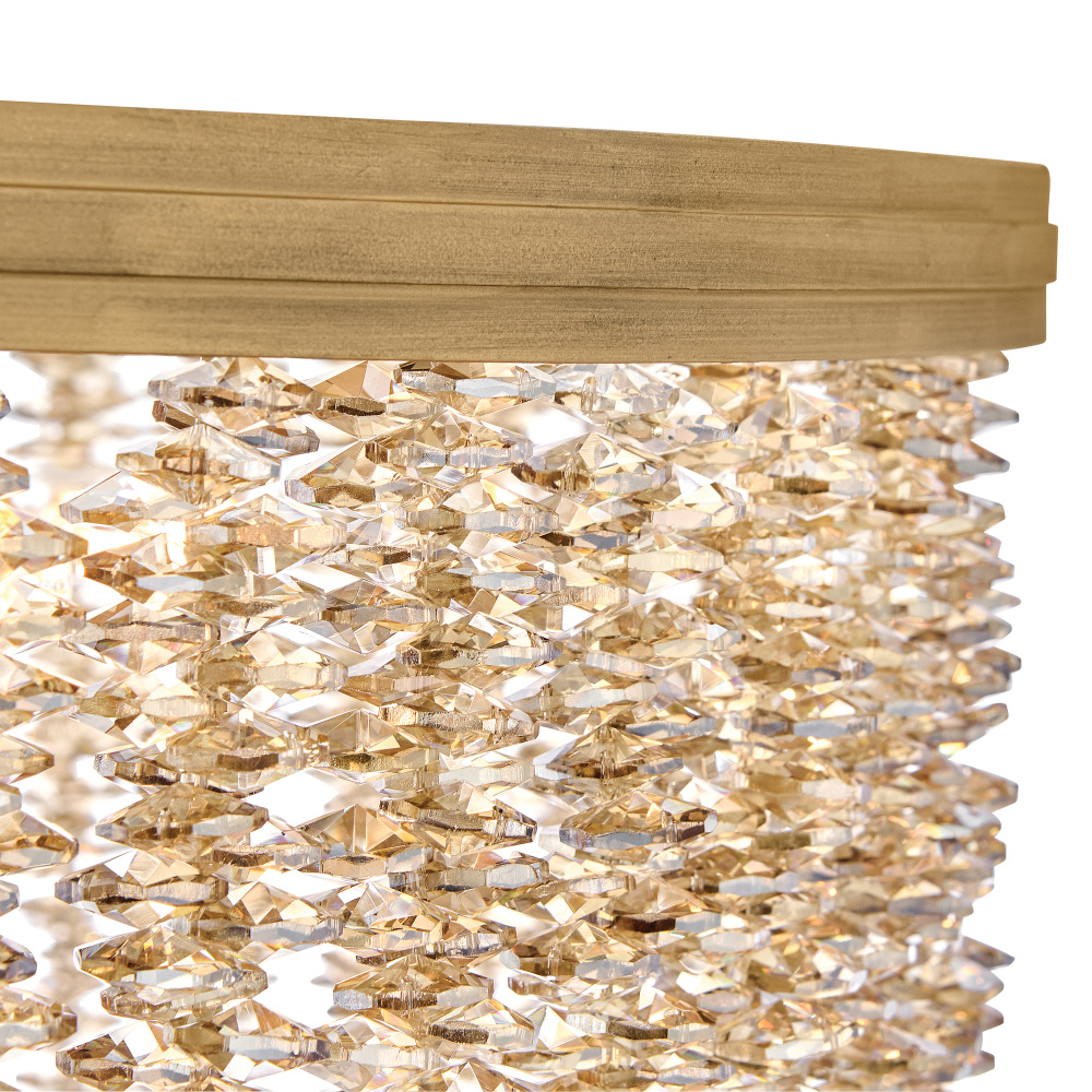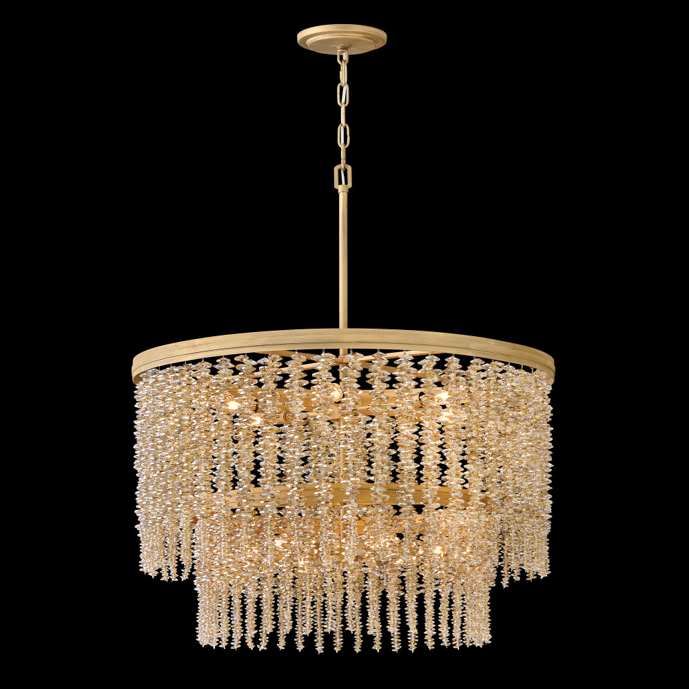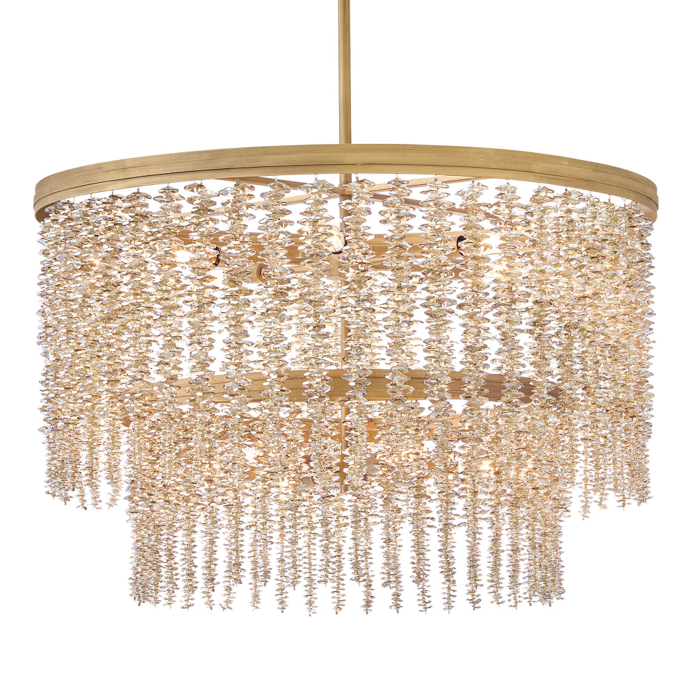 Dripping with glamour, Rubina’s magnificent shade is crafted from individually strung strands of sparkling crystal. A traditional tiered frame accentuates every beautiful refraction with its Burnished Gold finish.