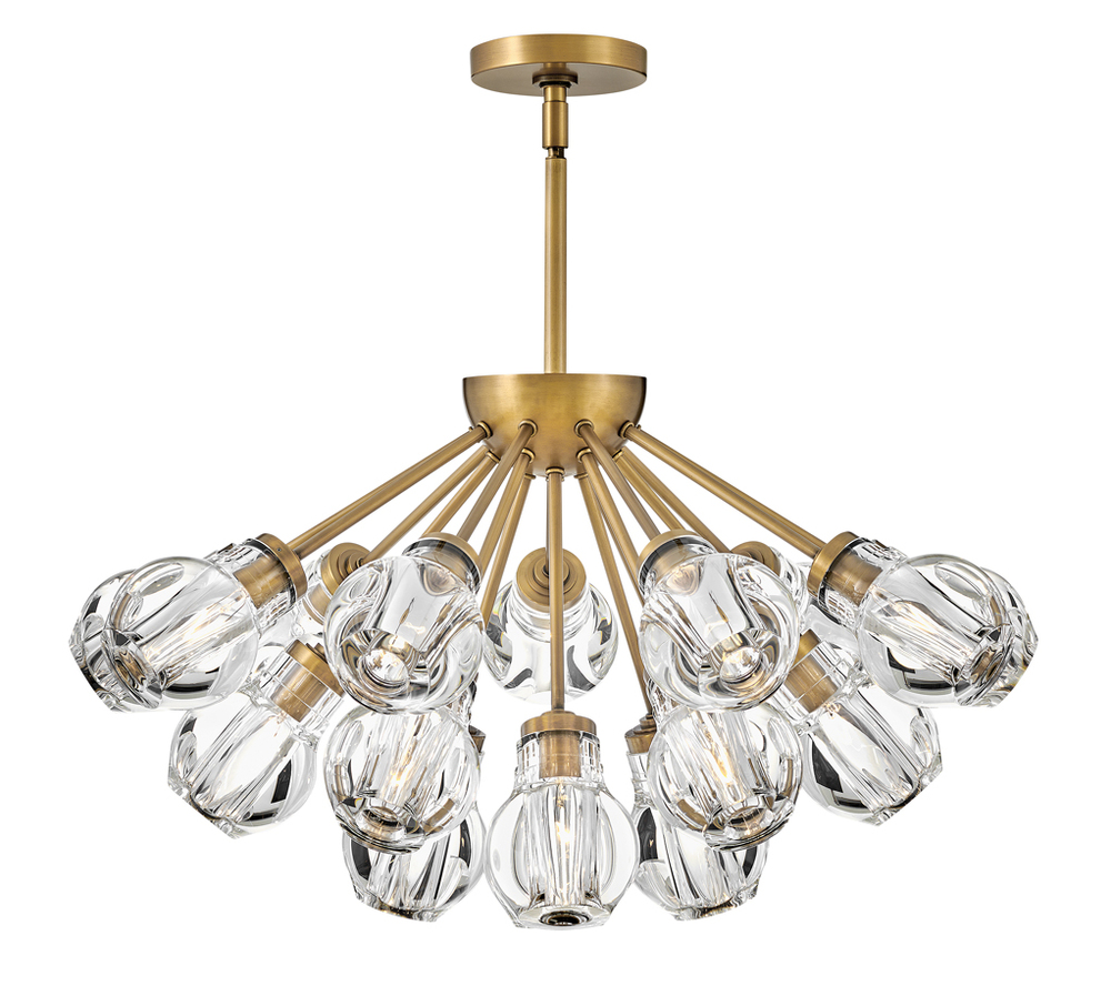 Elise infuses spaces with mesmerizing elegance. Light dramatically refracts from jaw-dropping, rounded, thick-cut crystal shades arranged in an enticing cluster formation. The robust arms, offered in either rich Black or Heritage Brass finishes, extend outward in a beautiful radiating pattern.