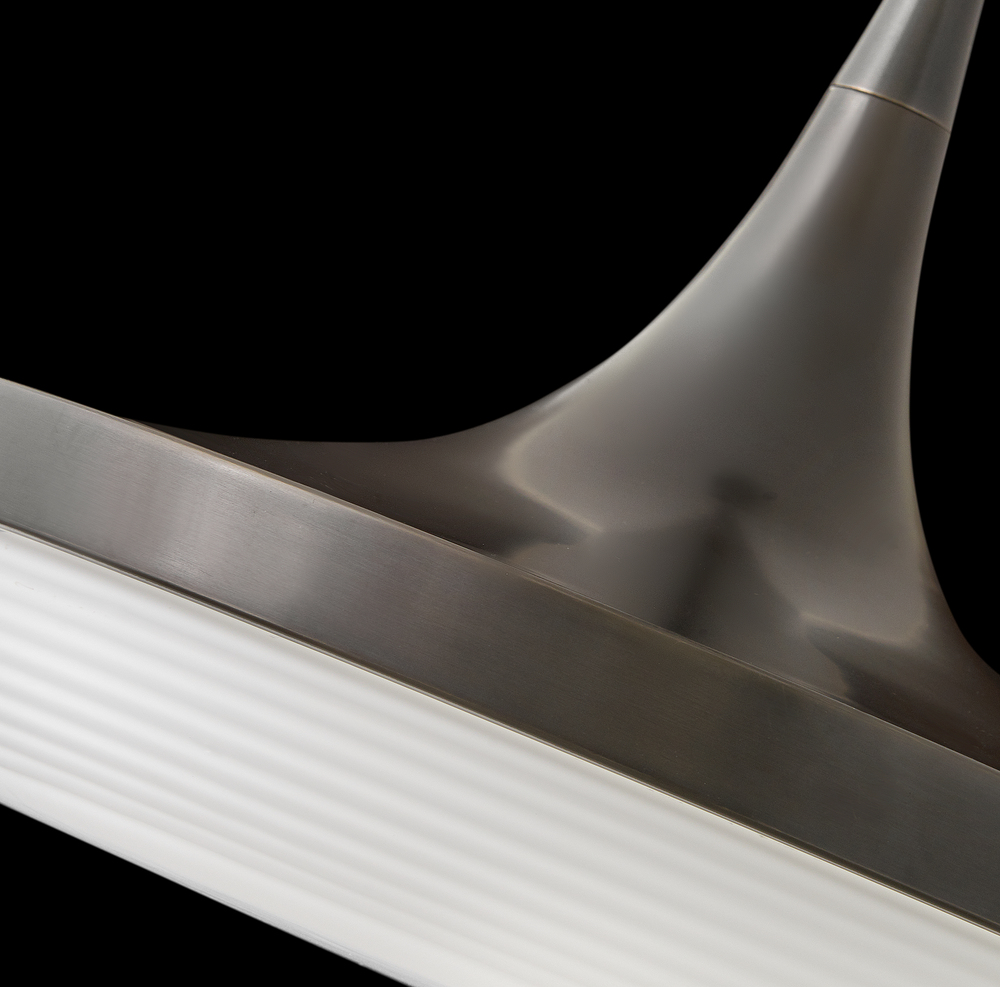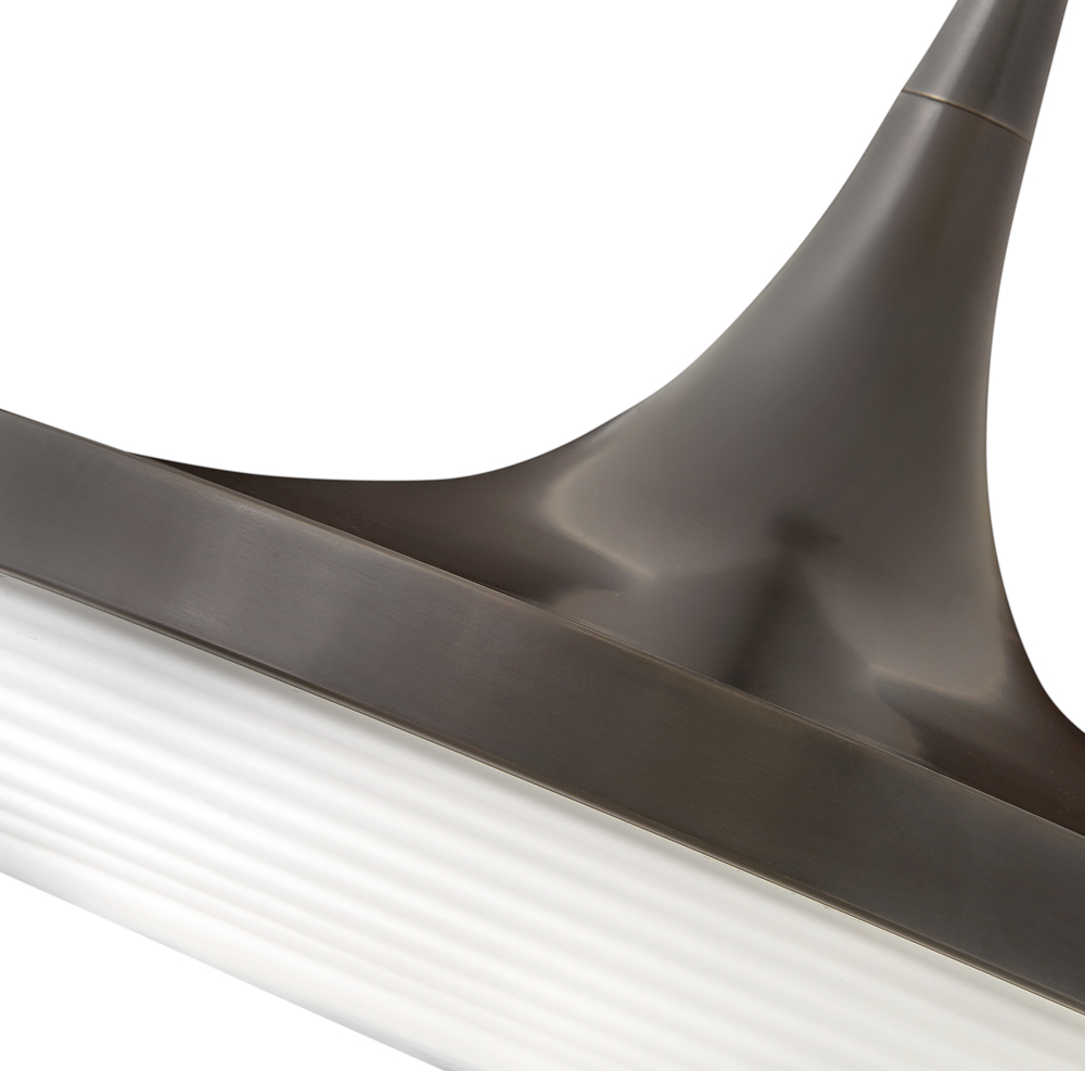 Elsa’s tapered form creates a striking silhouette. Ribbed glass detail, a floating canopy, and stylish Lacquered Brass and Black Oxide finish options offer versatility for various design styles, from transitional to modern.