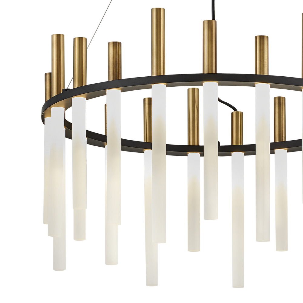Echo’s spectacular, integrated LED design reverberates with modern style. Sleek, glowing acrylic rods are crowned in metal tubes giving a contemporary look. Echo is offered in Heritage Brass finish accented by bold Black.
