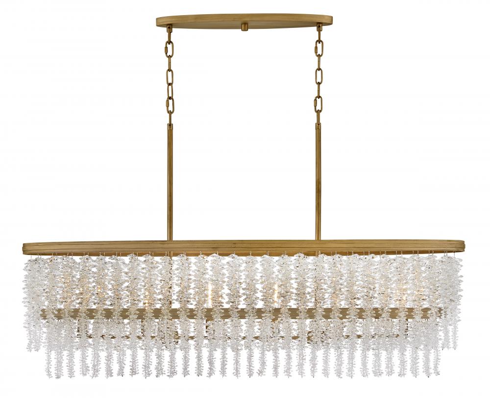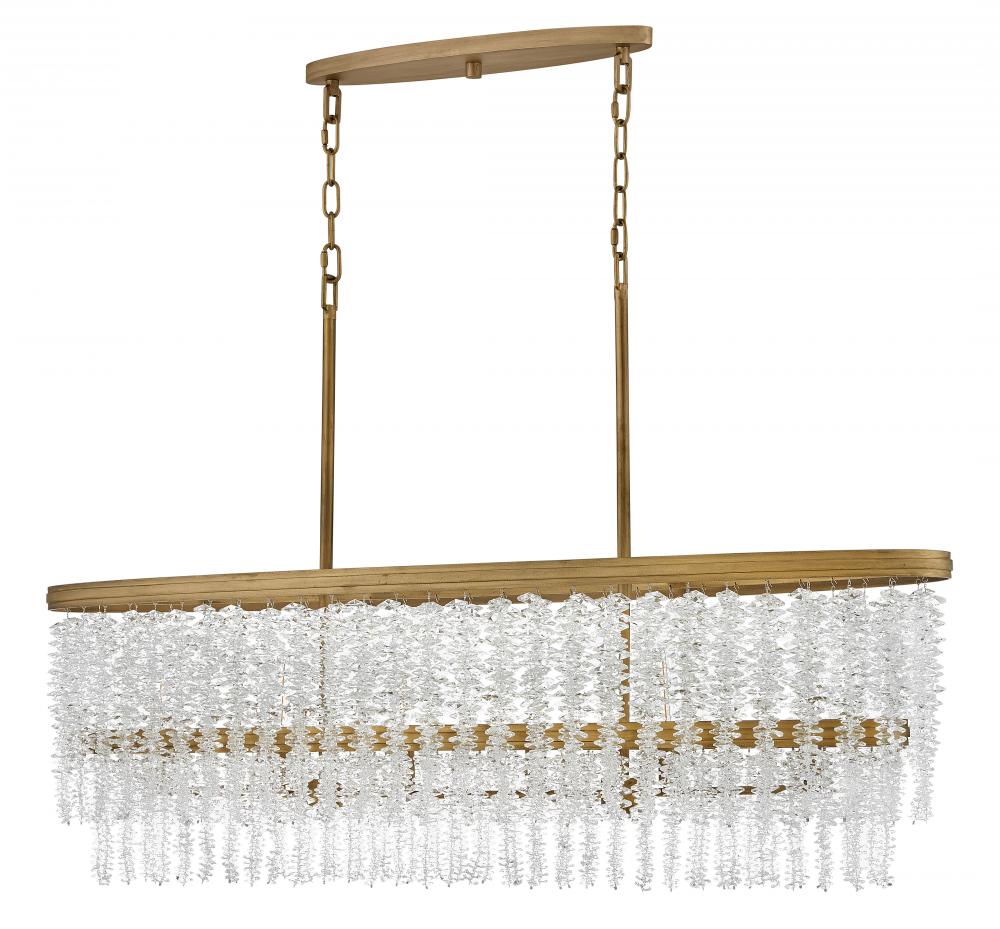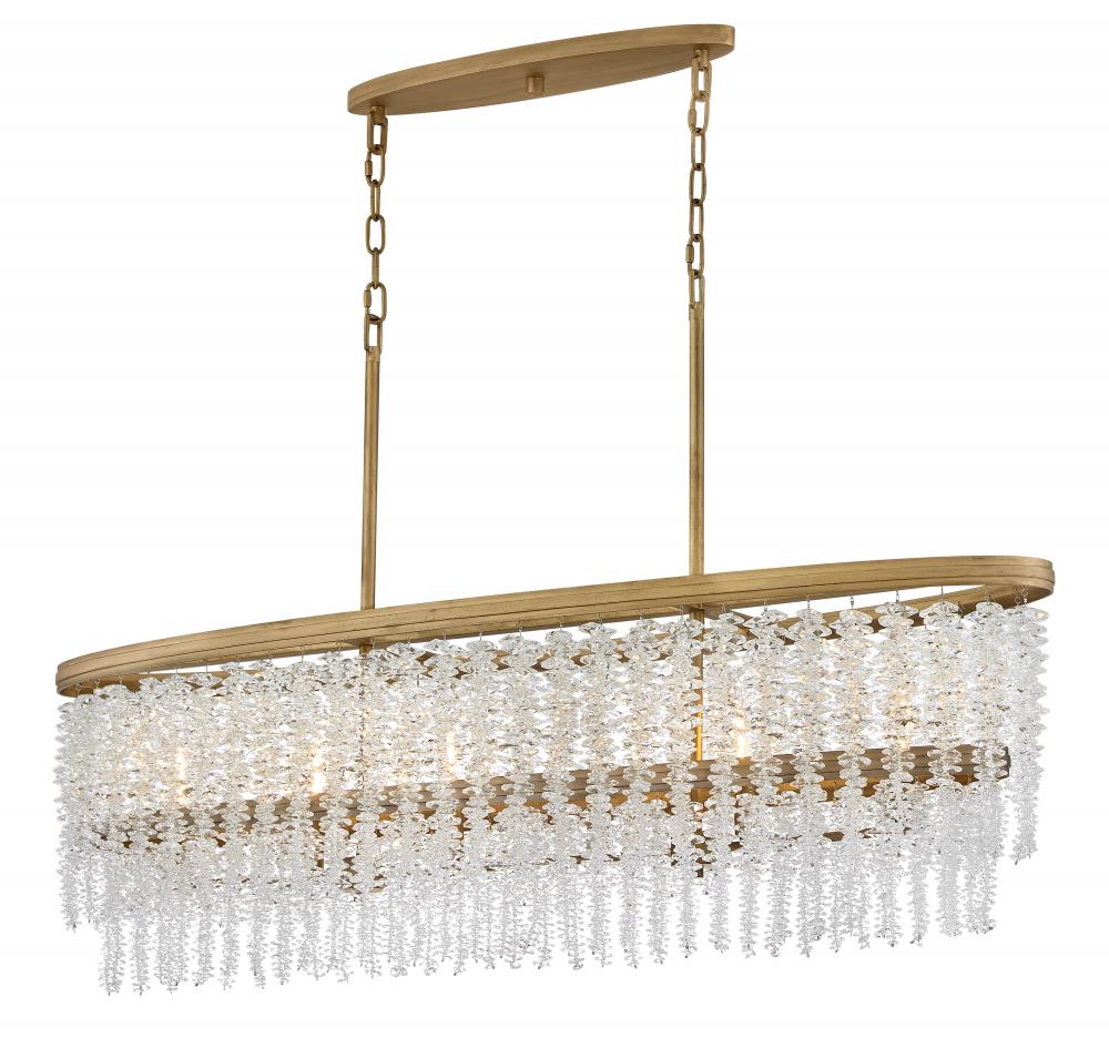 Dripping with glamour, Rubina’s magnificent shade is crafted from individually hung strands of sparkling crystal. A traditional tiered frame accentuates every beautiful refraction with its Burnished Gold finish.