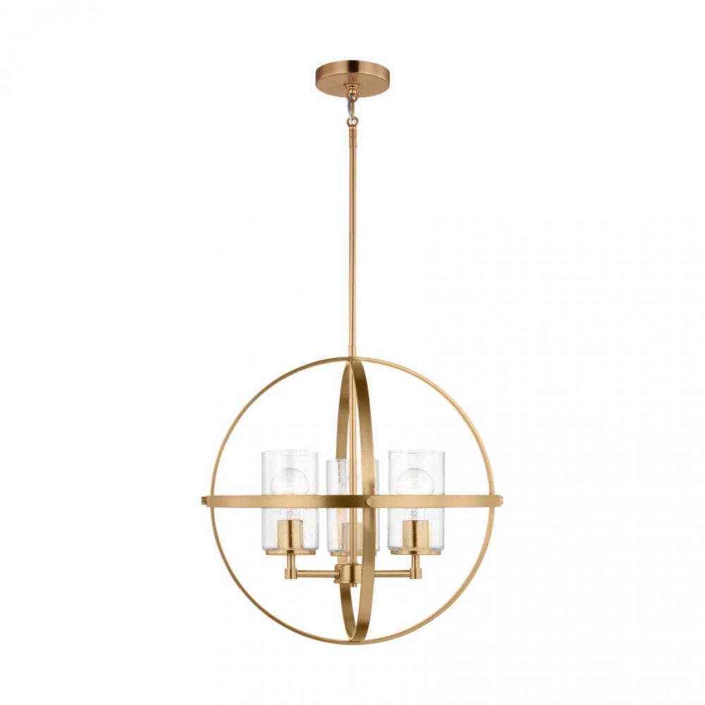 Alturas indoor dimmable 3-light single tier chandelier in satin brass with spherical steel frame and
