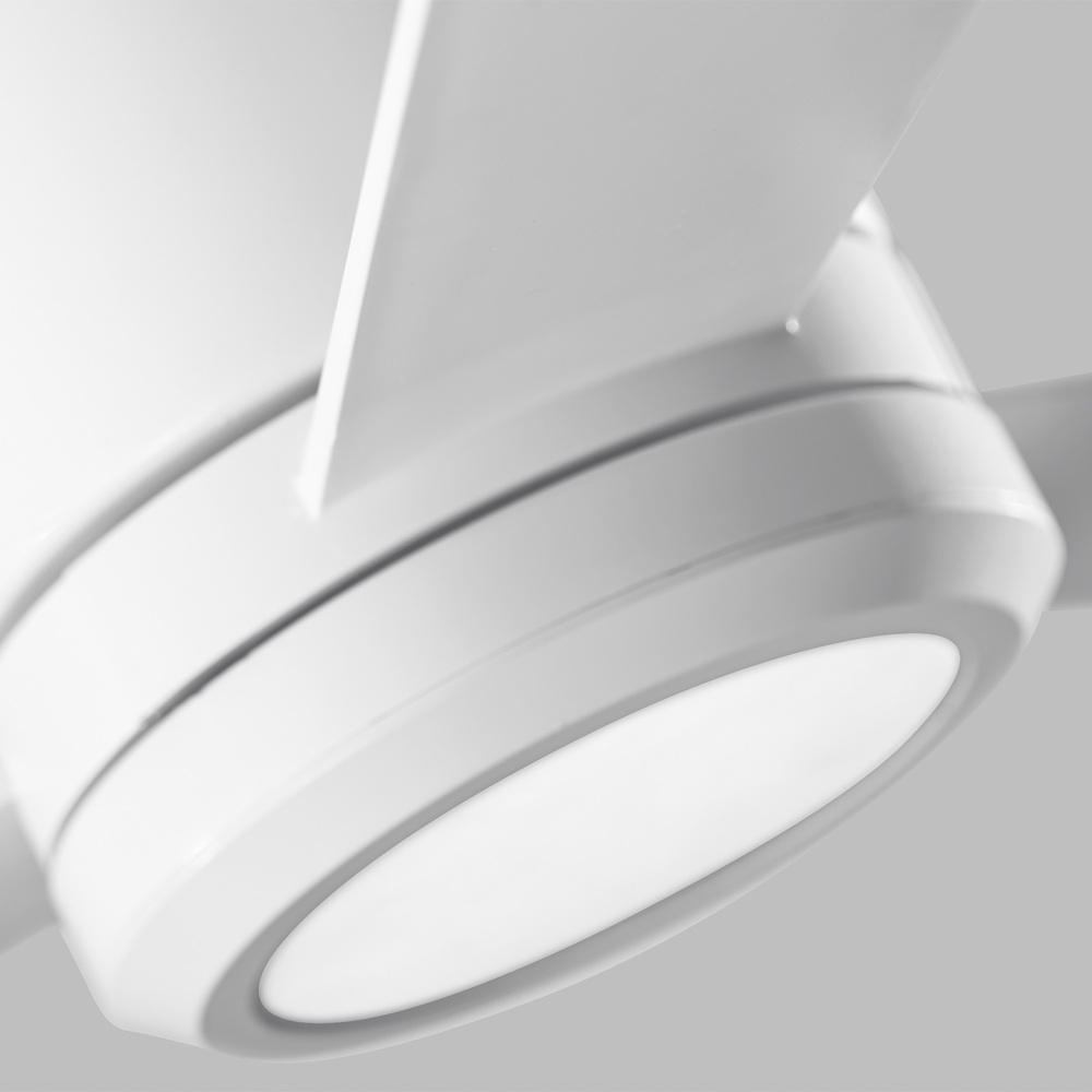 The Sean Lavin Clarity 42 LED in Matte White features a 153.0 X 12.0 3-speed motor with a Twelve-degree blade pitch. The Clarity 42 ceiling fan has a sleek, three-blade design that hugs the ceiling and is offered in four finish combinations to suite virtually any decor. The fans blade sweep is 42. A two-in-one remote control (combo hand-held and wall mount) is included.