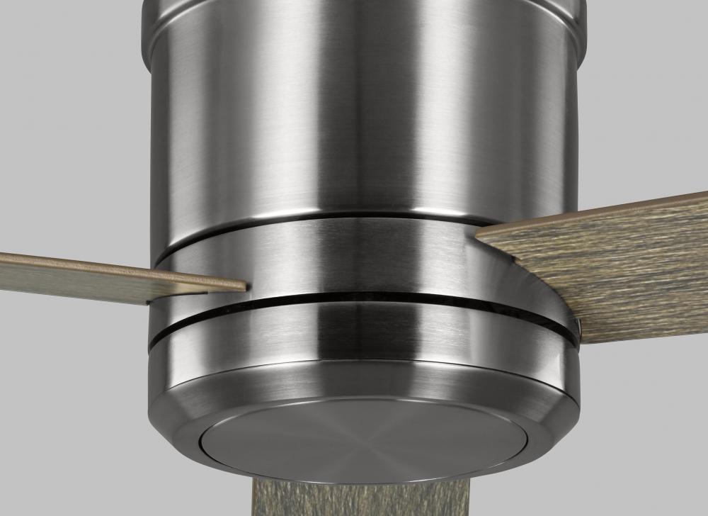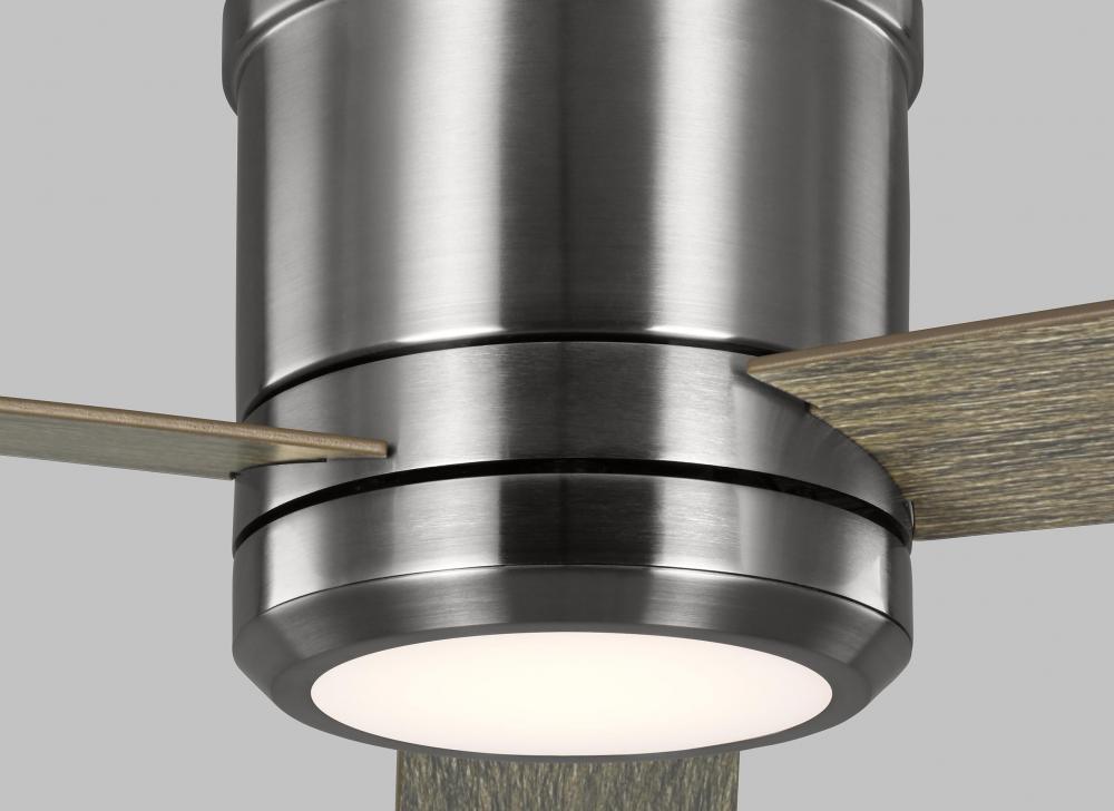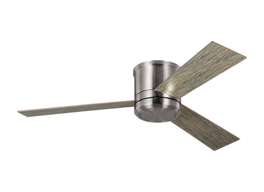 The Sean Lavin Clarity 56 LED in Brushed Steel w LGWO Blades features a 172.0 X 20.0 4 speed motor with a Twelve degree blade pitch. The Clarity 56 ceiling is a larger and more powerful version of the popular Clarity 52 fan. The Clarity 56 has a sleek, three-blade design that hugs the ceiling, making it ideal for rooms with low ceilings. It is offered in three finish combinations to suite virtually any decor requirement. Damp-rated, the Clarity 56 also comes with a four-speed wall control with LED dimmer.