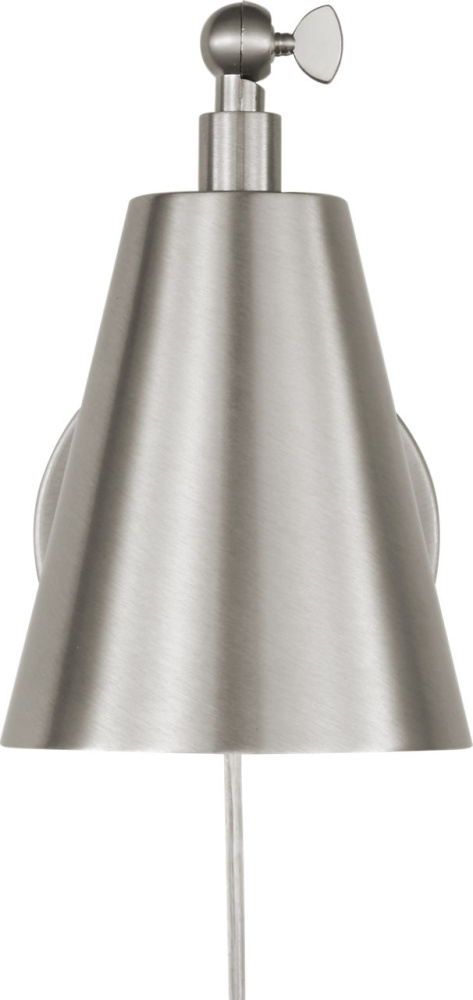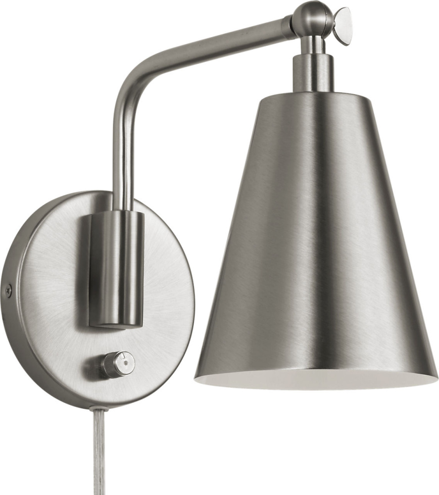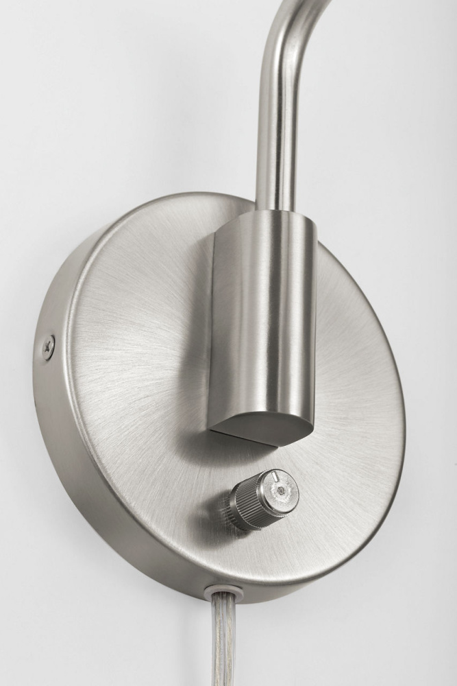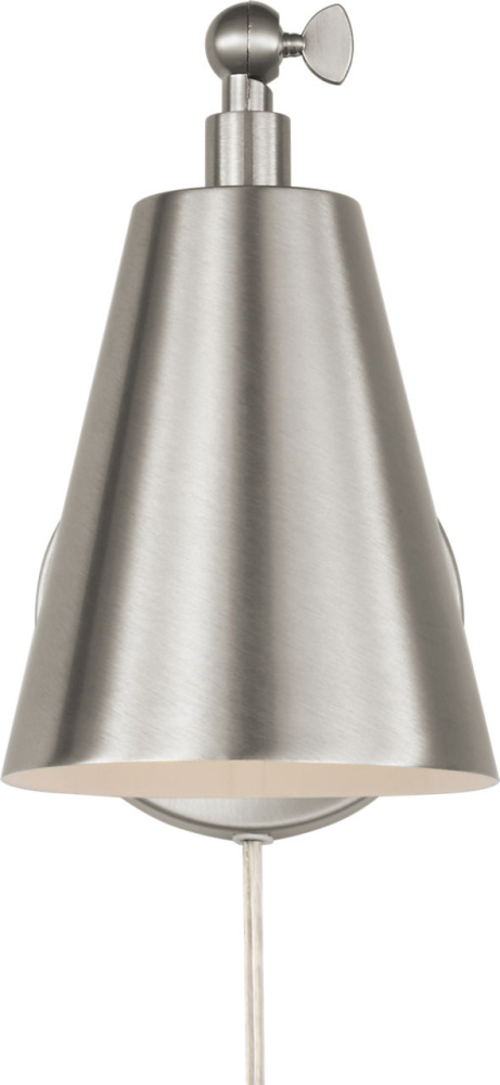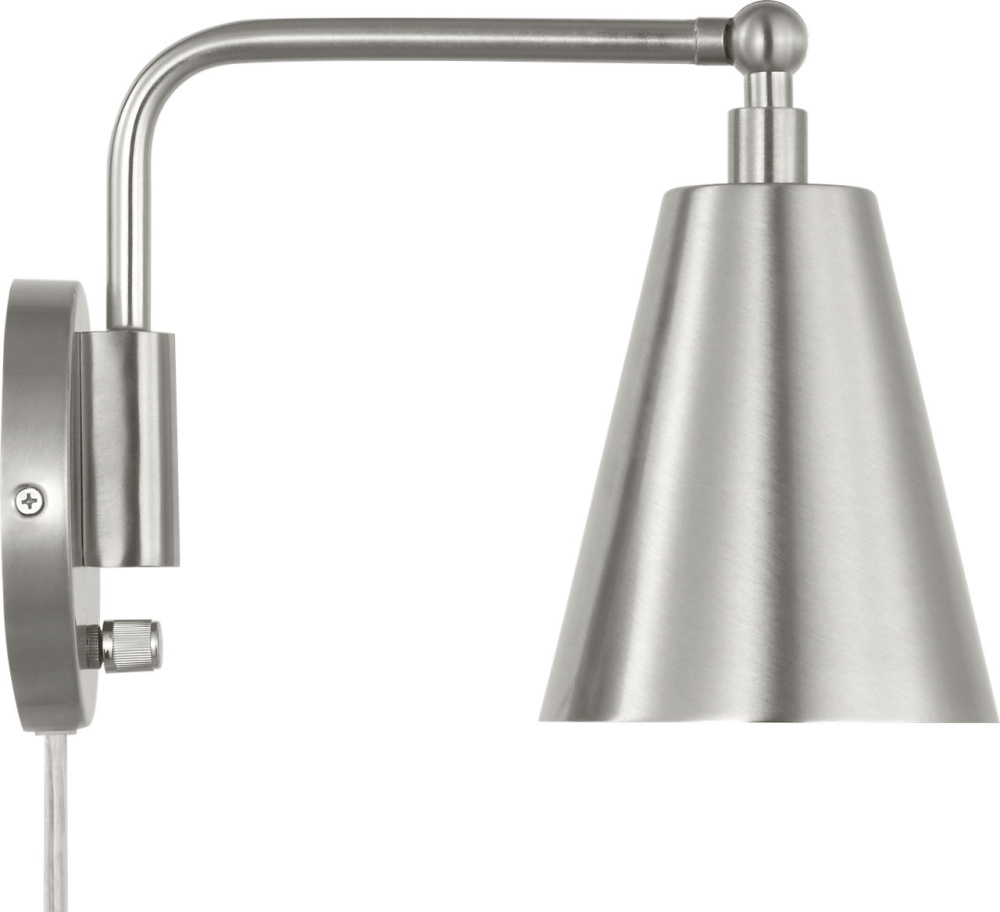 The transitional Drae Task Sconce is designed for flexibility and ease of use. The adjustable arm and metal shade allow for precise light direction, while a turn-knob on the backplate provides simple on/off control. A plug-in cord offers installation versatility, making it a practical solution for bedrooms, home offices, or reading corners.