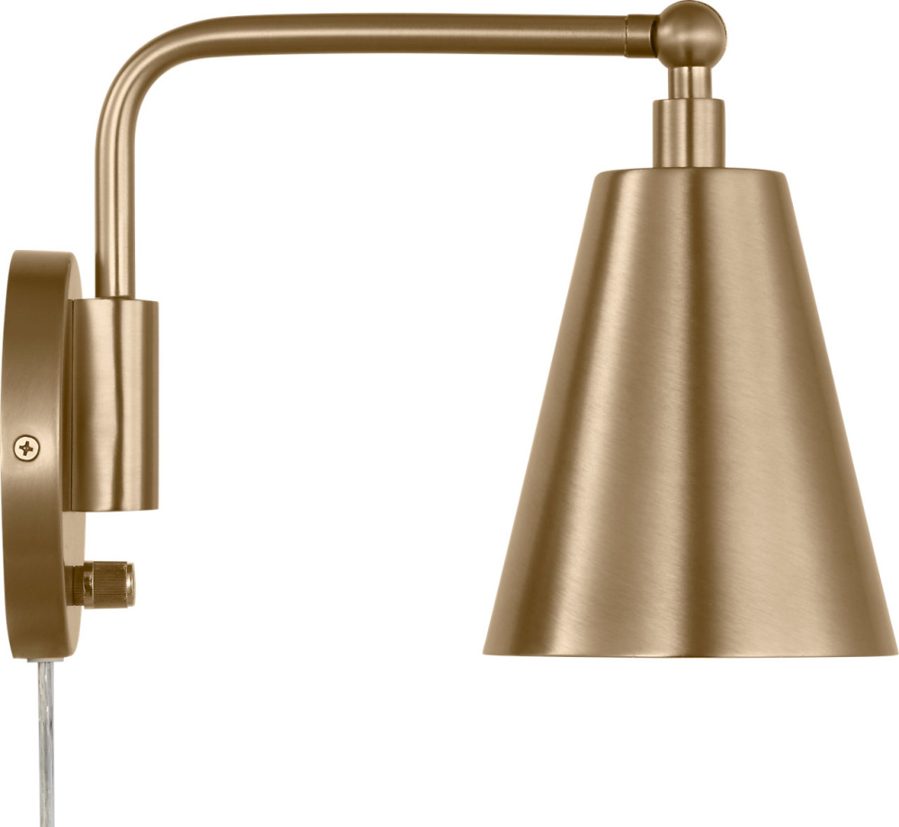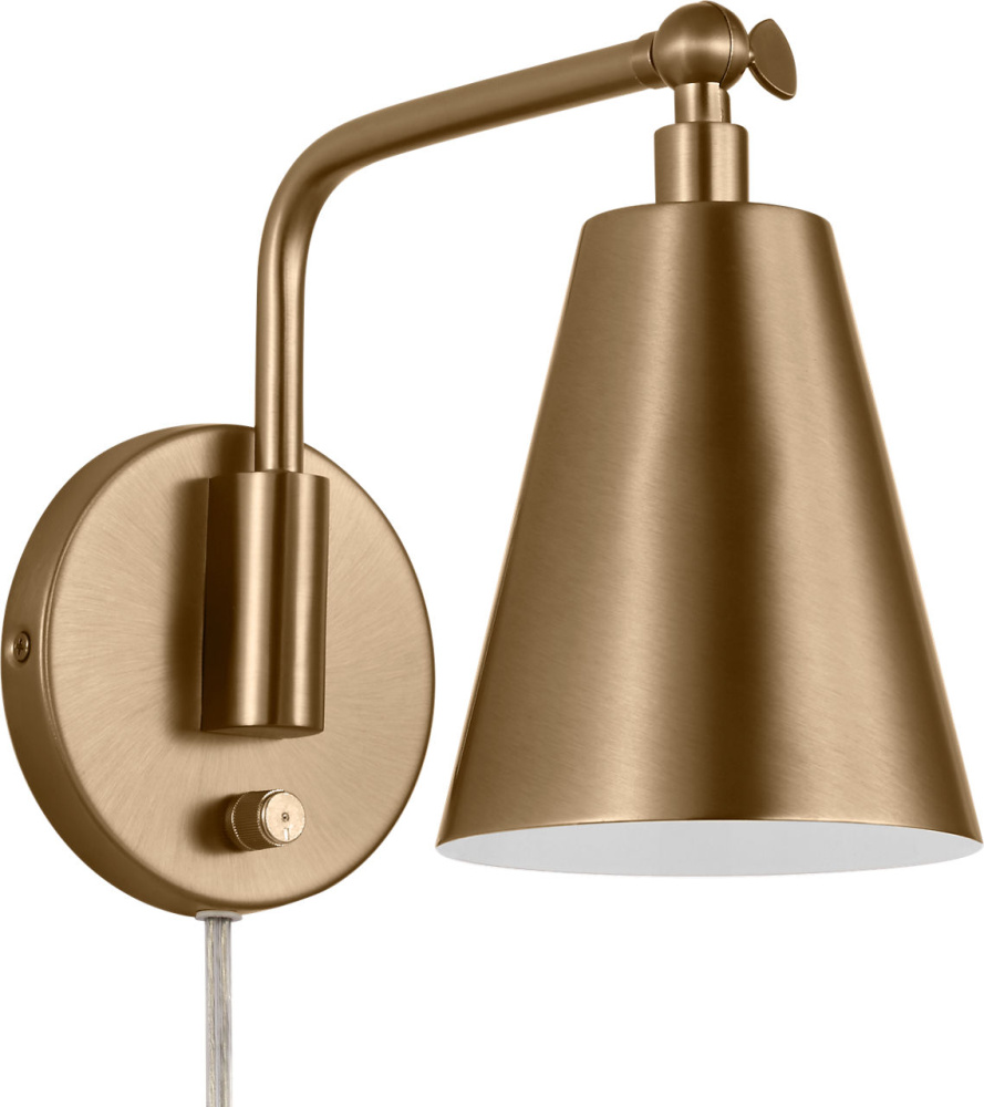 The transitional Drae Task Sconce is designed for flexibility and ease of use. The adjustable arm and metal shade allow for precise light direction, while a turn-knob on the backplate provides simple on/off control. A plug-in cord offers installation versatility, making it a practical solution for bedrooms, home offices, or reading corners.
