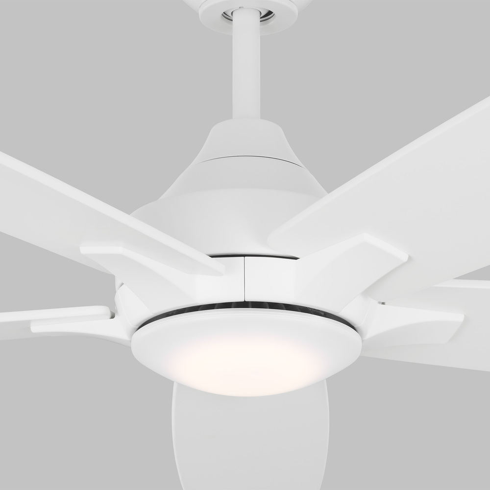 Energy-efficient DC motor fan with 6 midnight matte white downrod included, sloped ceiling compatible