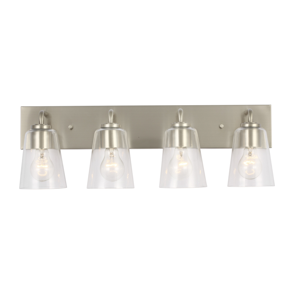 The Miles family draws on a refined traditional profile and is grounded in beautiful form. The common element within the Miles line is the tapered glass shade available in clear or etched glass and hardware available in Midnight Black, Satin Brass, and Brushed Nickel. Miles effortlessly blends into a wide range of interior spaces - whether classic, contemporary, or traditional. Profiles available in chandelier, pendant, sconce, and vanity.