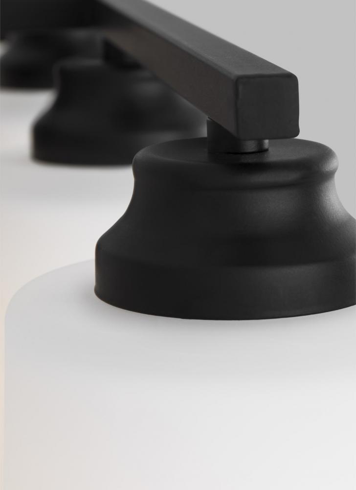 Transitional fixture in midnight black finish will complement bathrooms, powder rooms, bedrooms, and hallways