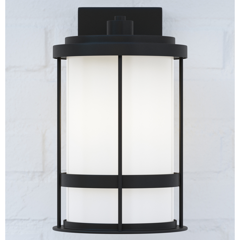 With a nod to retro-industrial chic, the Wilburn outdoor fixtures wraps a white frosted glass shade in a fun metal cage to create a casual and easygoing look. Offered in Antique Bronze and Black finishes with Etched White glass, the assortment includes a one-light outdoor pendant, small medium, large, and extra-large one-light outdoor wall lanterns, a one-light out door post lantern and a one-light outdoor ceiling flush mount. Both incandescent lamping and ENERGY STAR-qualified LED lamping are available for most of the fixtures, and some can easily convert to LED by purchasing LED replacement lamps sold separately.