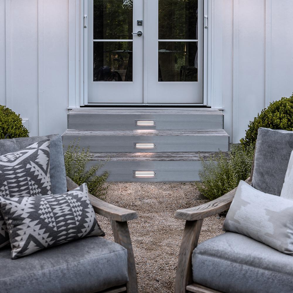 Dash LED brick and step lights deliver sleek style, safety, and security in a powerful package. Available in small and large sizes, as well as flat and louvered versions, Dash features a cast 316 stainless steel front equipped with frosted glass for soft illumination.