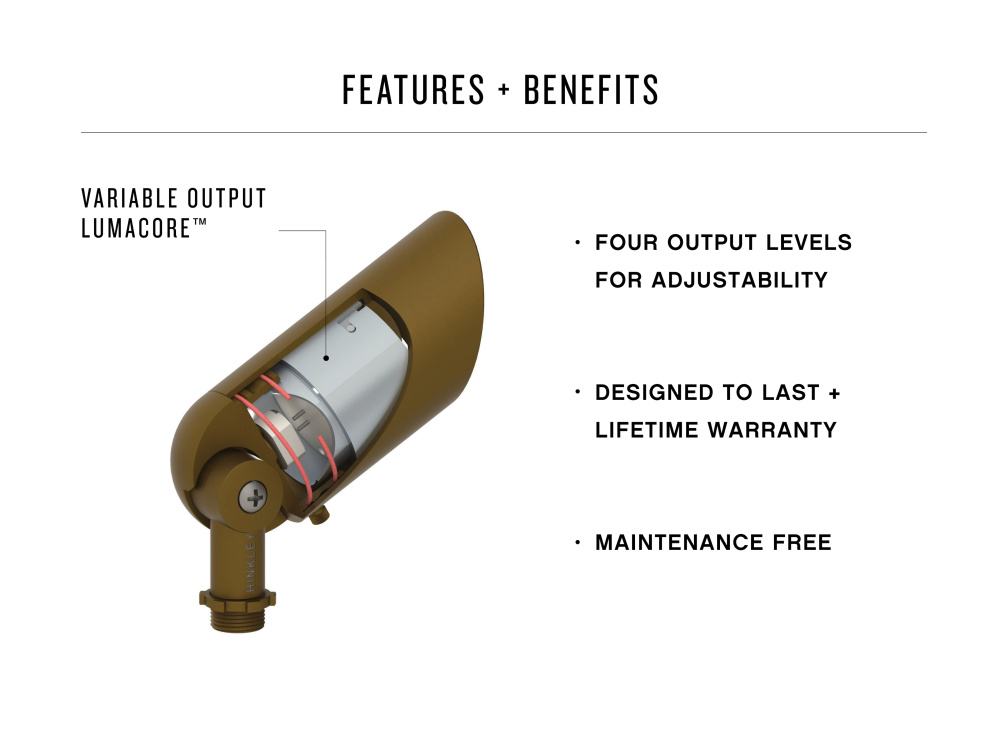 The Variable Output LumaCORE LED accent lighting system is an expertly engineered core that withstands the elements and provides the user with full control over wattage and beam spread, all in innovative single design.
