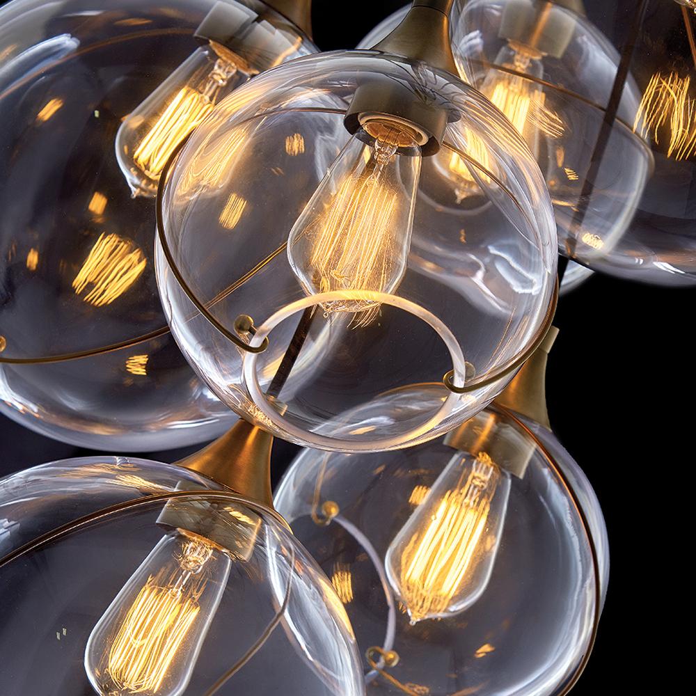 Mesmerizingly asymmetrical with a bohemian, mid-century modern flair, Skye showcases stunning globes of clear or cased opal glass with off-center openings. Slender rings and delicate details in Heritage Brass or Black finishes pull the look together, while adjustable wires allow you to create the perfect look for your space.