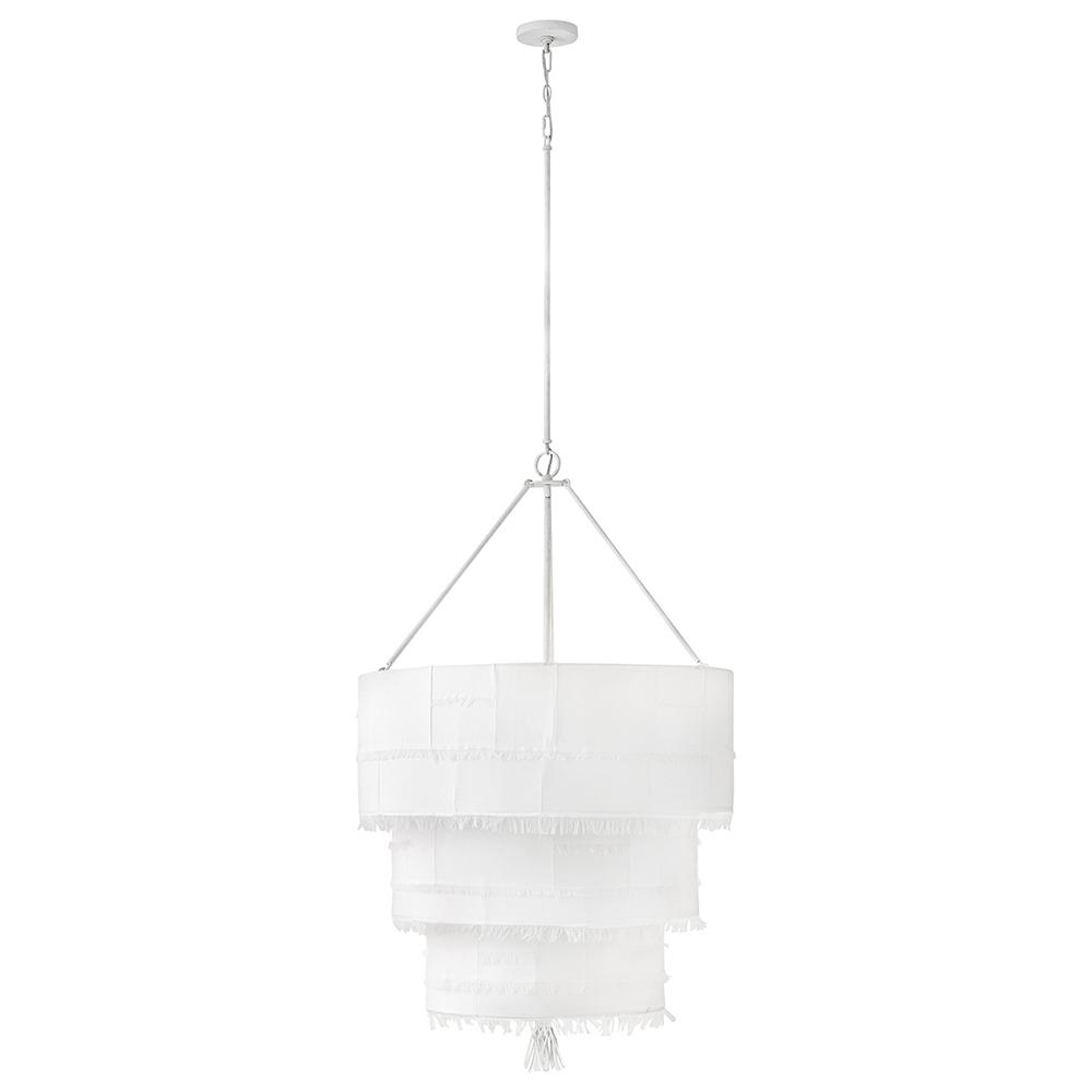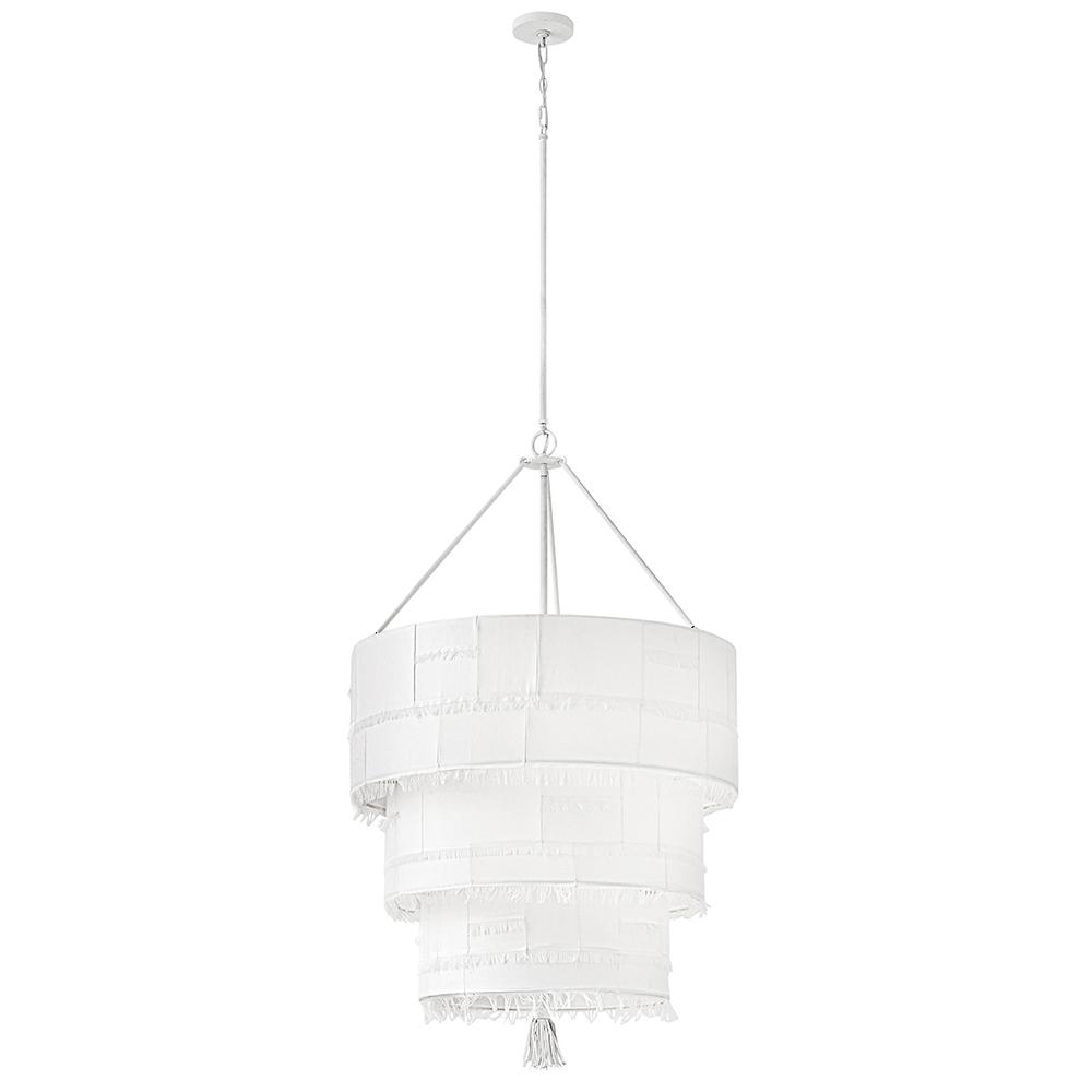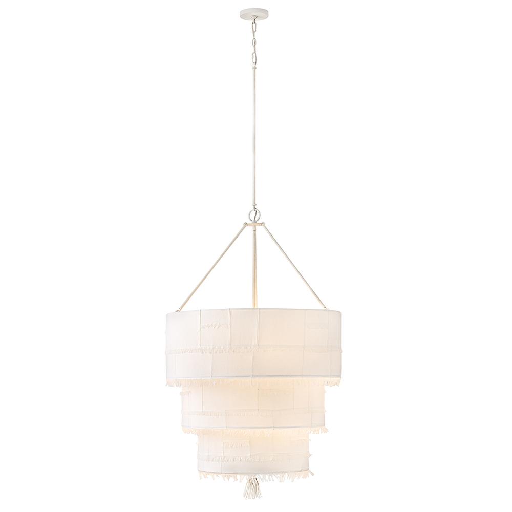 Taking a nod from current distressed fashions, Baya’s soft, hand-sewn patchwork shade creates a light and elegant feeling. Its coastal cottage style and chic texture make an artsy transitional statement complemented by a leather tassel, comfortable dimmable lamping, and a Textured Plaster finish.