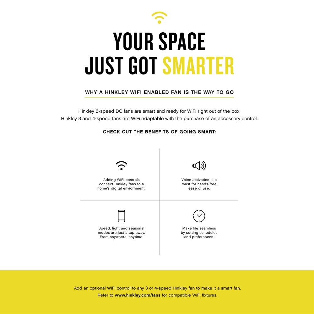 Draftsman's updated transitional form ties perfectly into any space while delivering superior performance. Matte White and Matte Black finish options enhance Draftsman's industrial-inspired design to complement indoor and outdoor spaces alike. With integrated LED and DC motor technology, Draftsman delivers excellent energy efficiency. For lower ceilings, a flush mount kit is an accessory option for easy customization. Operated by the HIRO control or WiFi-compatible with the Hinkley app.