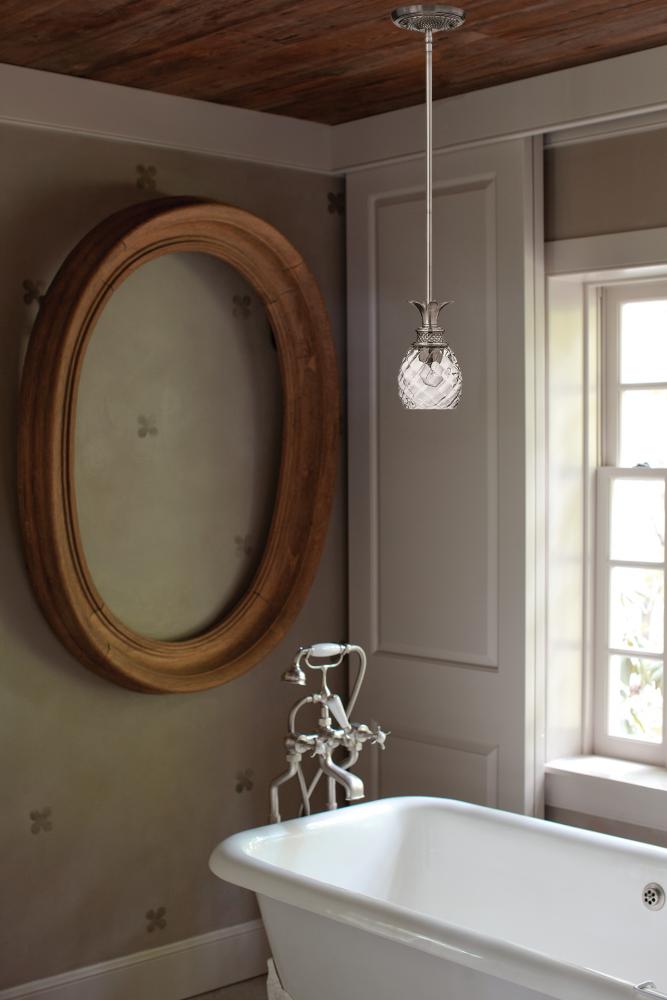 A Hinkley classic, the ornate Plantation collection features exceptional pineapple shaped, clear optic glass that makes a noble statement. The elaborate, decorative cast detailing is accentuated by its lush finish.