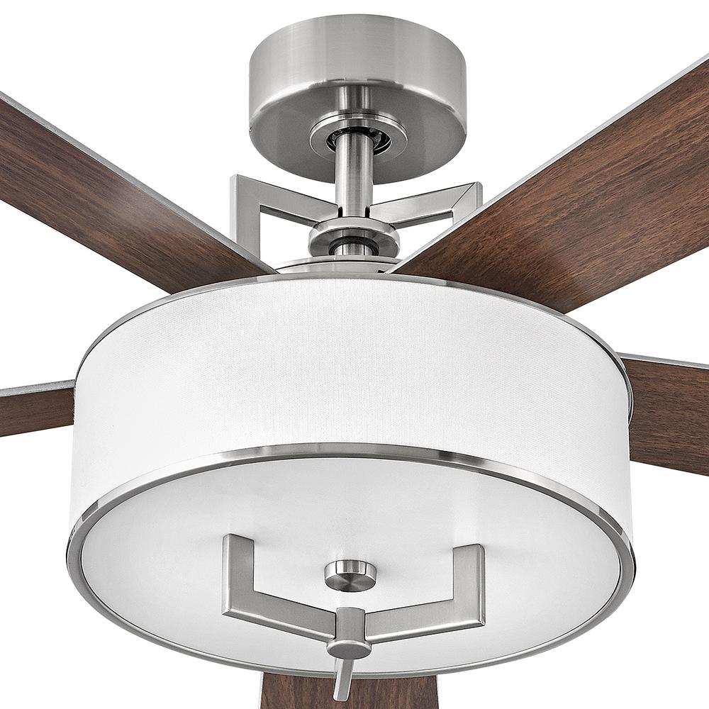 Hampton is a modern transitional design, offering the ultimate in urban sophistication. The minimal, rectangular frame, paired with a decorative acrylic etched bottom lens and sleek blades, is softened by a contemporary off-white linen drum shade. Available in Metallic Matte Bronze with Walnut or Metallic Matte Bronze blades, Brushed Nickel with Walnut or Silver blades, and Heritage Brass with Birch or Matte White blades, Hampton is perfect for any interior decor.