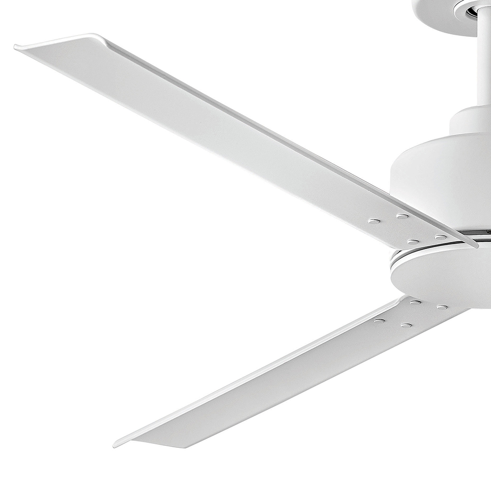 The raw, edgy style of Indy is the perfect complement for all modern industrial design-inspired rooms. Available in Brushed Nickel, Matte White or Metallic Matte Bronze finish options. Indy is so versatile; it can be used for both indoor and outdoor spaces. Blades are included with every fan.