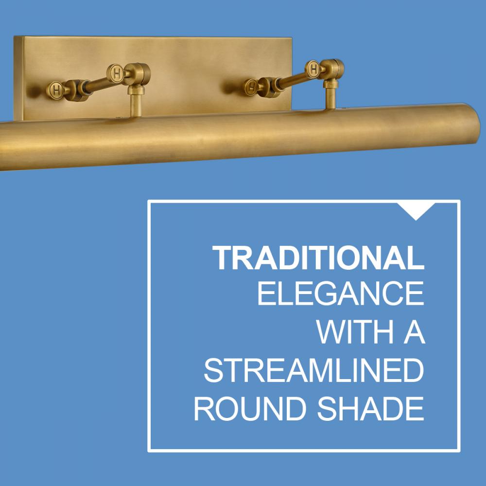 Stokes embraces traditional elegance at its finest. A delicate geometric backplate serves as the backdrop for a rounded shade in a striking Black or Heritage Brass finish. Slim and streamlined, Stokes makes a dramatic impact while highlighting favorite elements within a space with artful illumination and comes with a removable cord and switch.