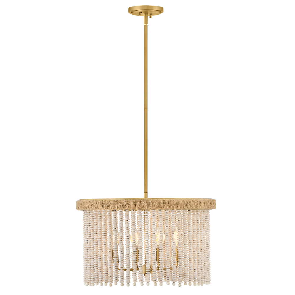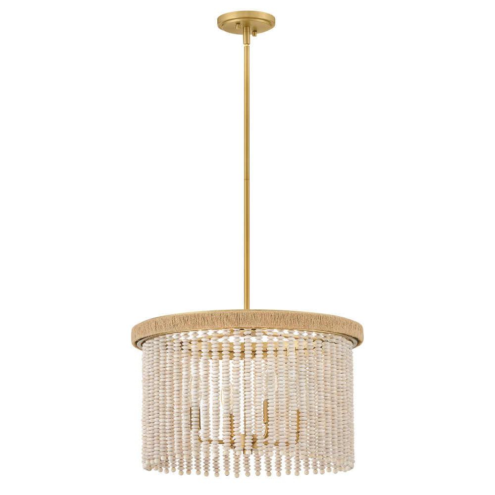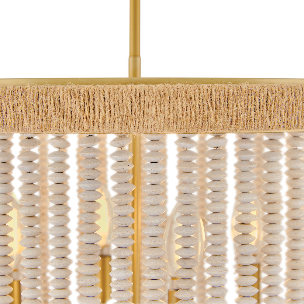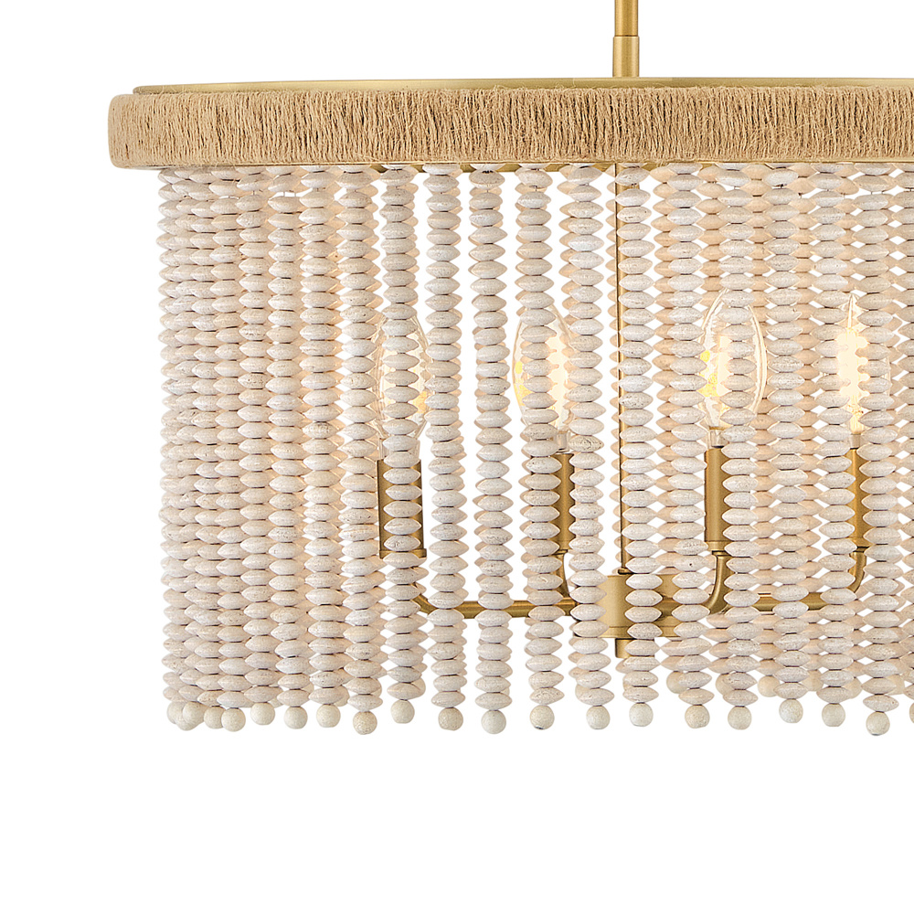 Indra blends coastal styling with an elegant transitional silhouette to fill your space with a naturally inspired atmosphere. A hand-strung curtain of stacked, taupe wooden beads diffuses warm illumination, while a frame hand-wrapped in natural fiber jute rope adds a touch of organic texture to your decor.
