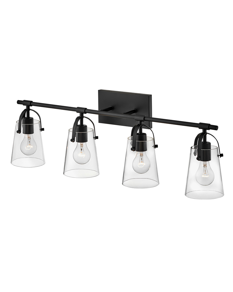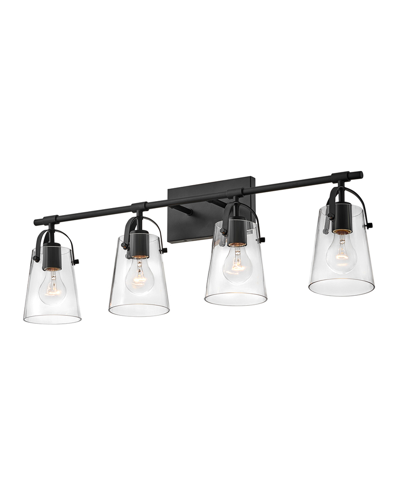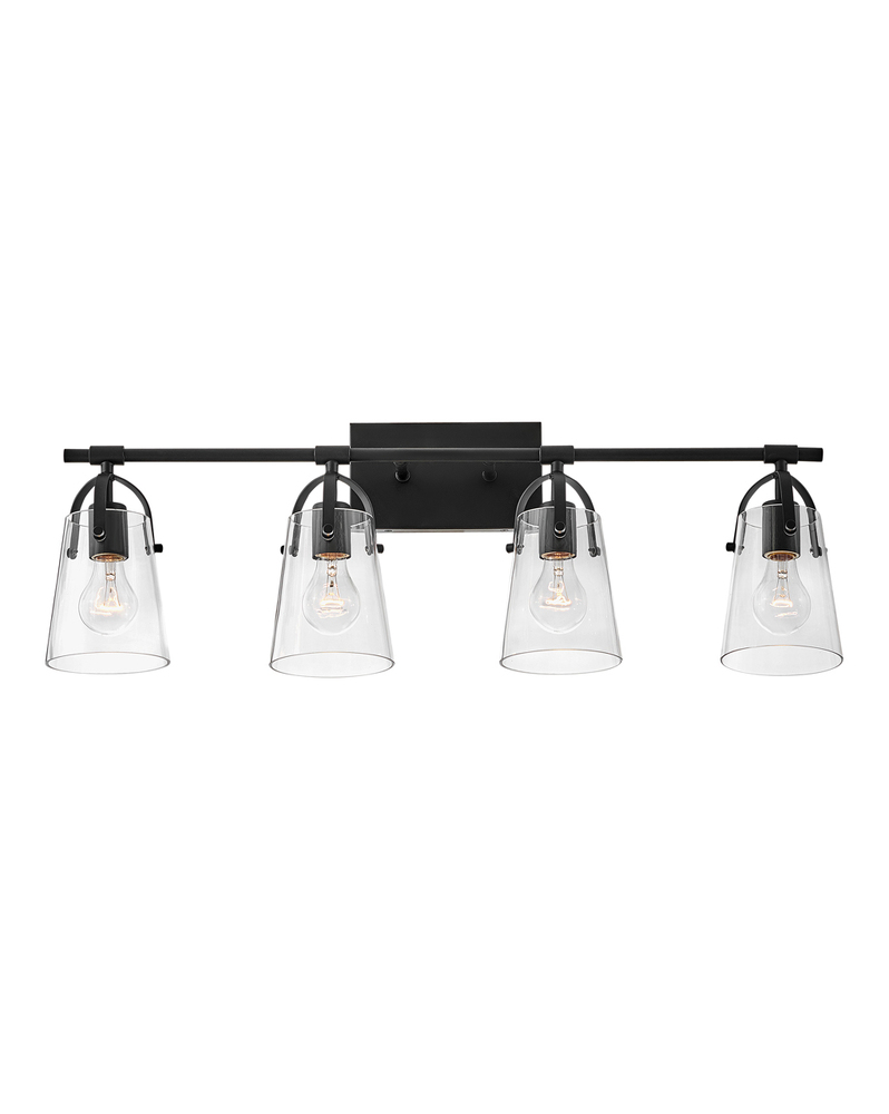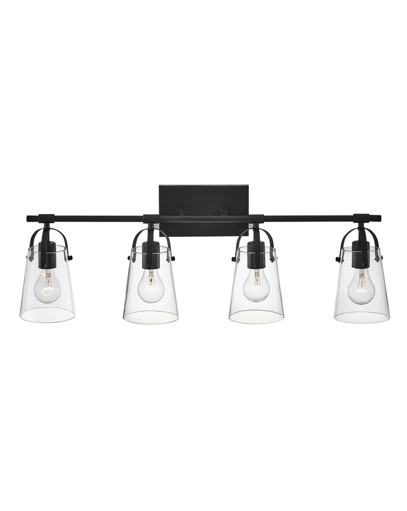 Clean and airy, Foster breathes composed simplicity into any bath space. Softly tapered glass shades suspended from arched handle prongs create a sophisticated transitional silhouette, enhanced by practical yet stylized details.
